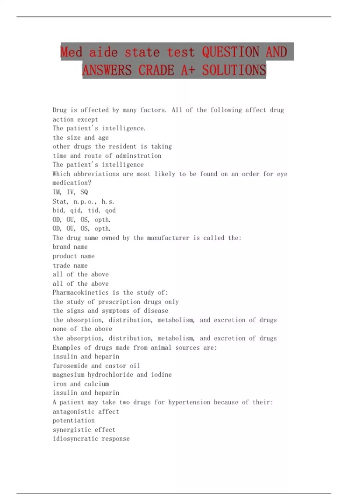 Med aide state test QUESTION AND ANSWERS CRADE A+ SOLUTIONS