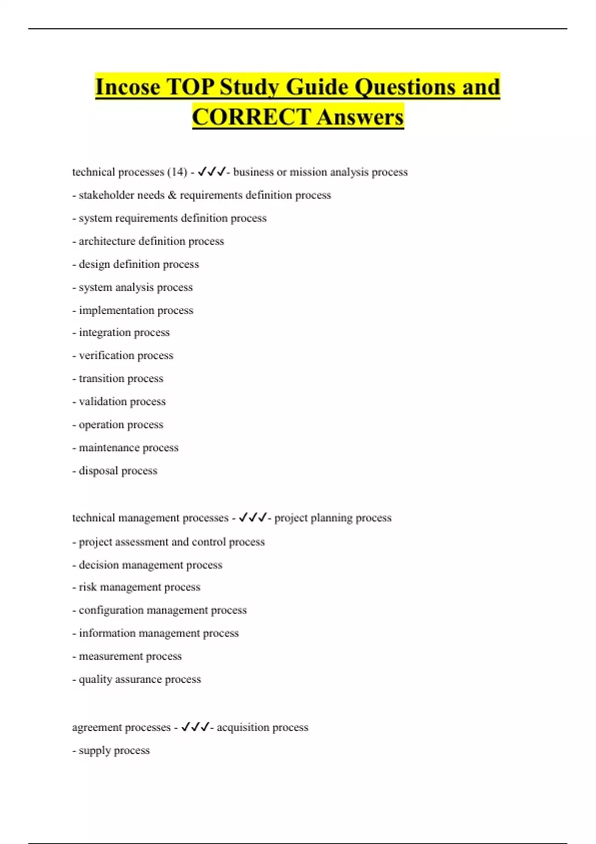 technical processes (14) - - business or mission analysis process - stakeholder needs & requirements definition process - system requirements definition process - architecture definition process - design definition process - system analysis process - implementation process - integration process - verification process - transition process - validation process - operation process - maintenance process - disposal process