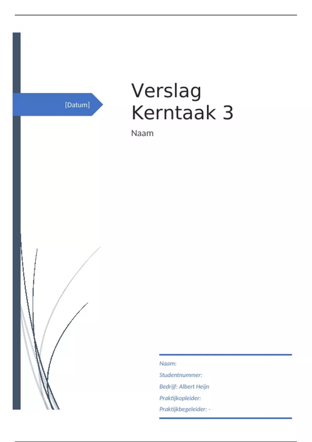 Dit is het verslag van kerntaak 3 wat je moet maken op de opleiding retail management op het MBO niveau 4. In dit verslag kan je van alles vinden dat je kan gebruiken in je eigen verslag, ook is alles erg uitgebreid beschreven, ik heb uiteindelijk een 8,3 gehaald voor dit verslag. Veel succes met je eigen verslag! Verschillende examenonderdelen die zijn beschreven zijn: Examenonderdeel 1: Werkplanning maken. Examenonderdeel 2: Begeleiden van medewerkers. Examenonderdeel 3: Organiseren en leiden van een werkoverleg. Examenonderdeel 4: Personeelsbeleid uitvoeren.