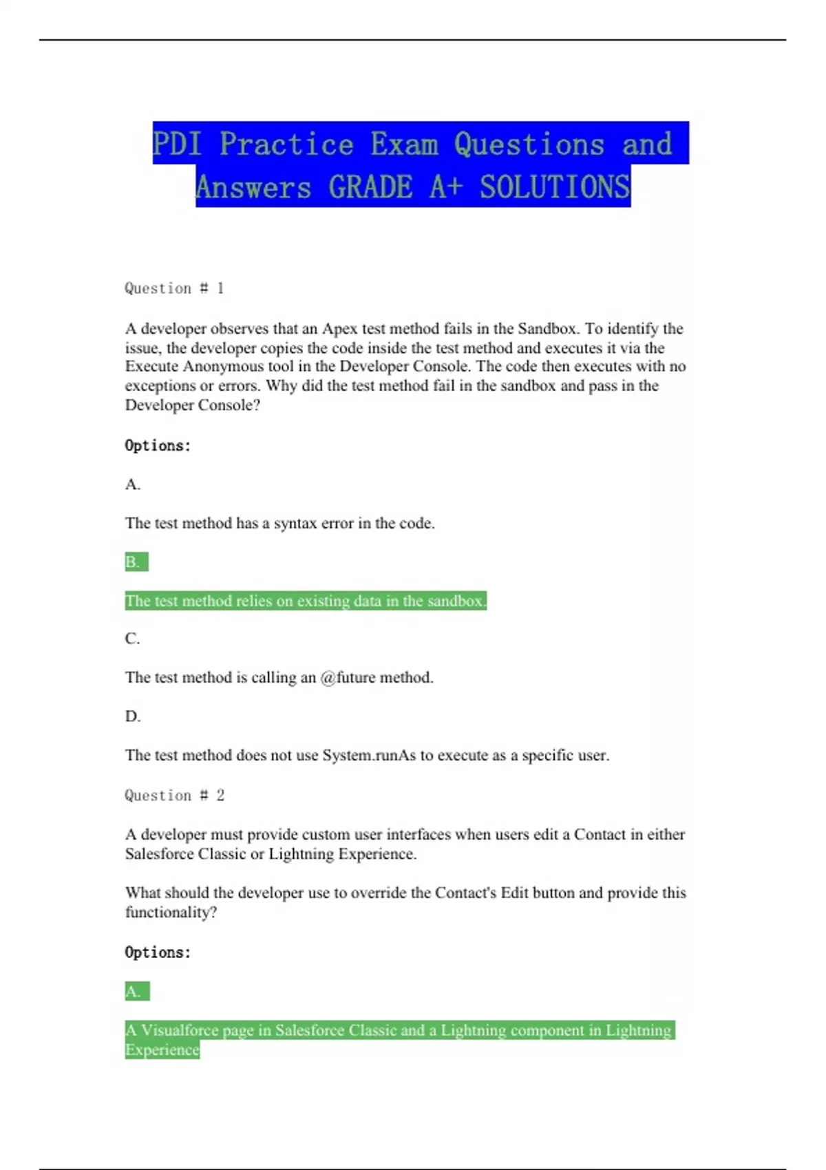 Answers GRADE A+ SOLUTIONS