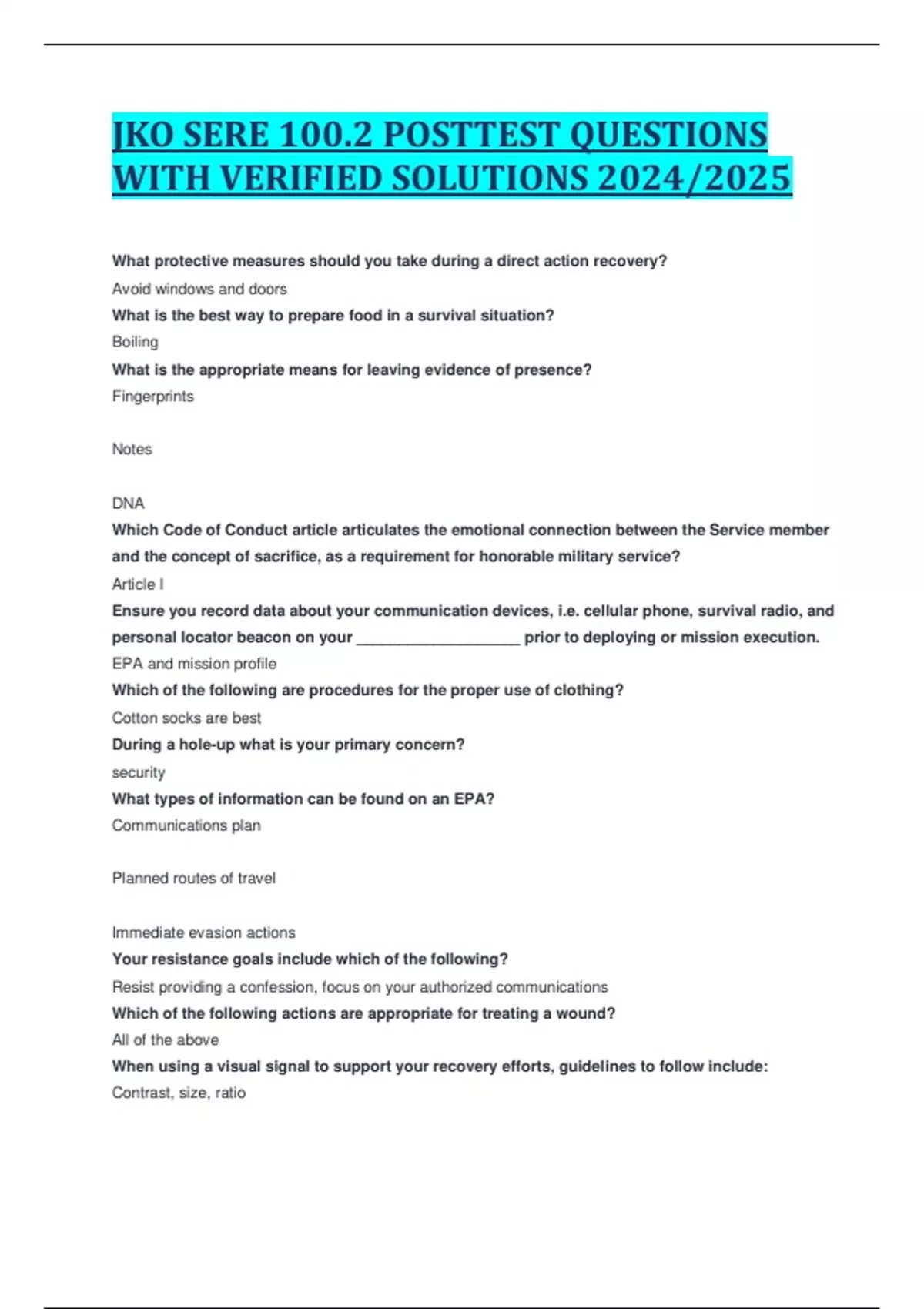 JKO SERE 100.2 POSTTEST QUESTIONS WITH VERIFIED SOLUTIONS 2024/2025
