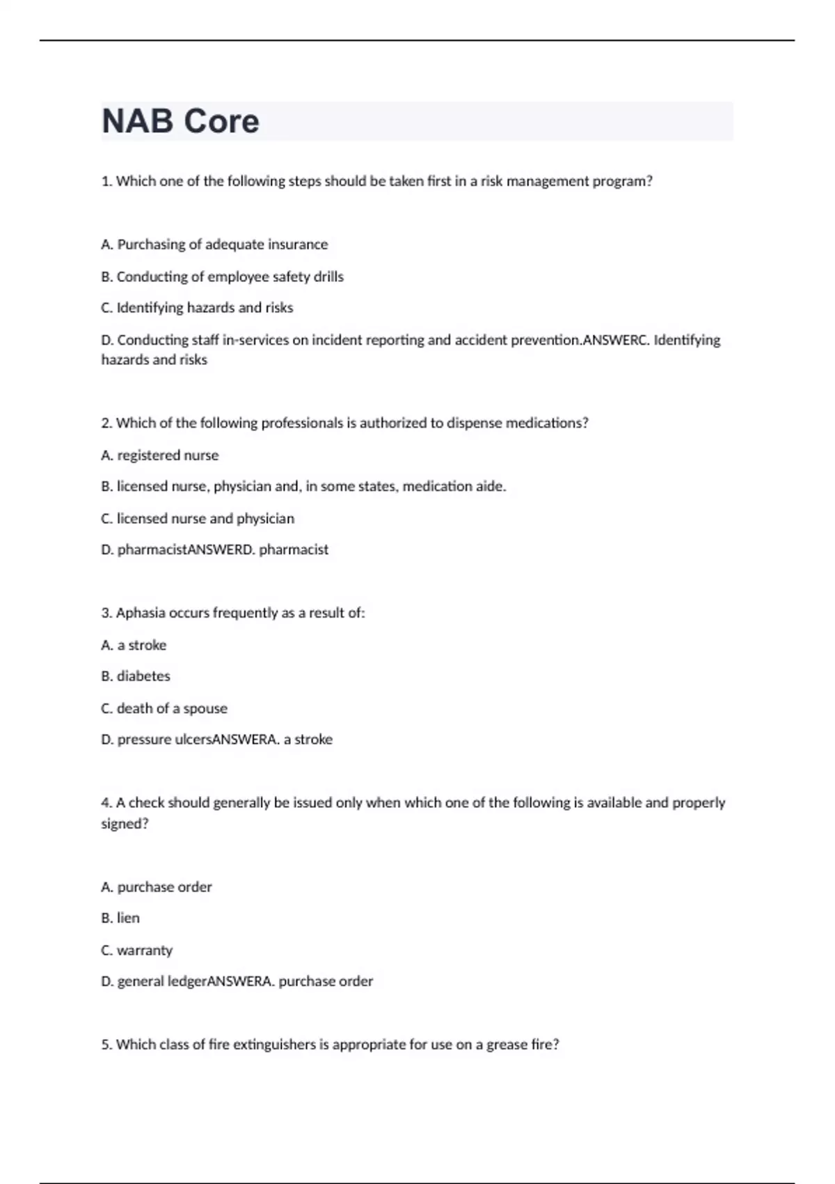 NAB Core Exam Questions With Correct Answers (GRADED A+)