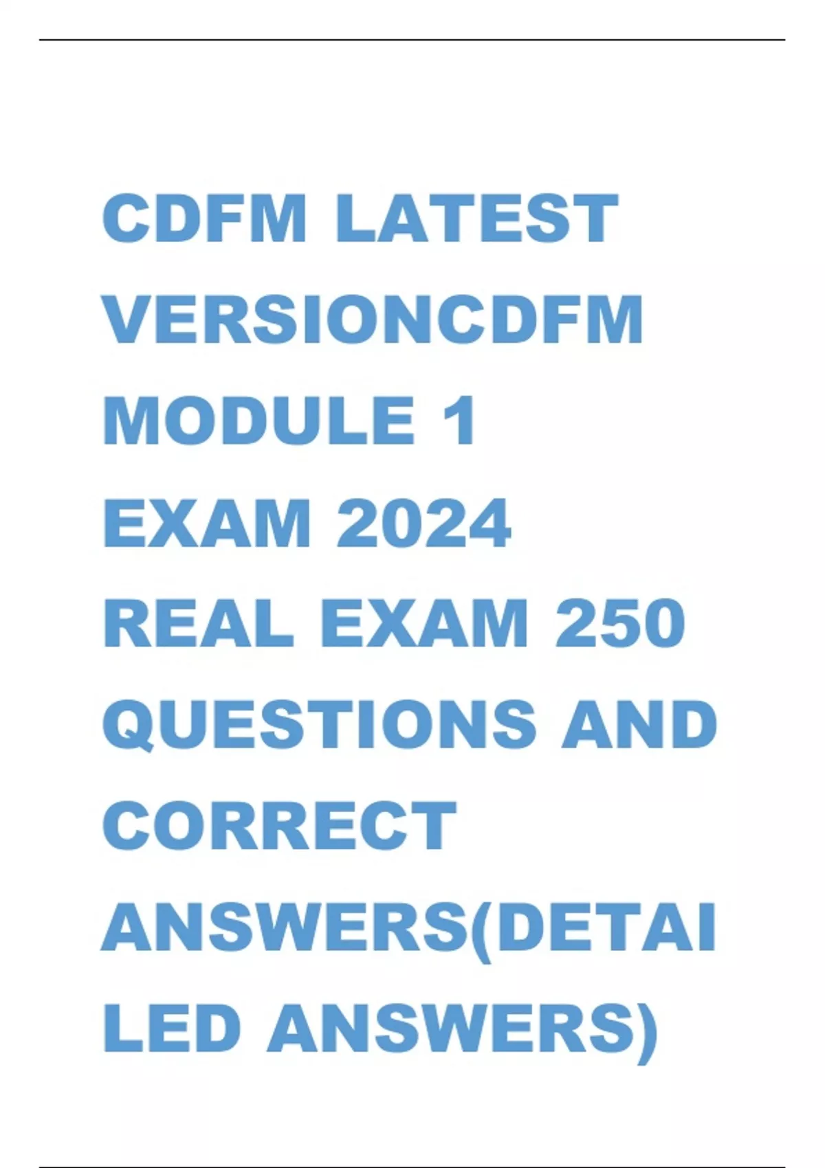 CDFM LATEST VERSIONCDFM MODULE 1 EXAM 2024 REAL EXAM 250 QUESTIONS AND CORRECT ANSWERS(DETAI LED ANSWERS)