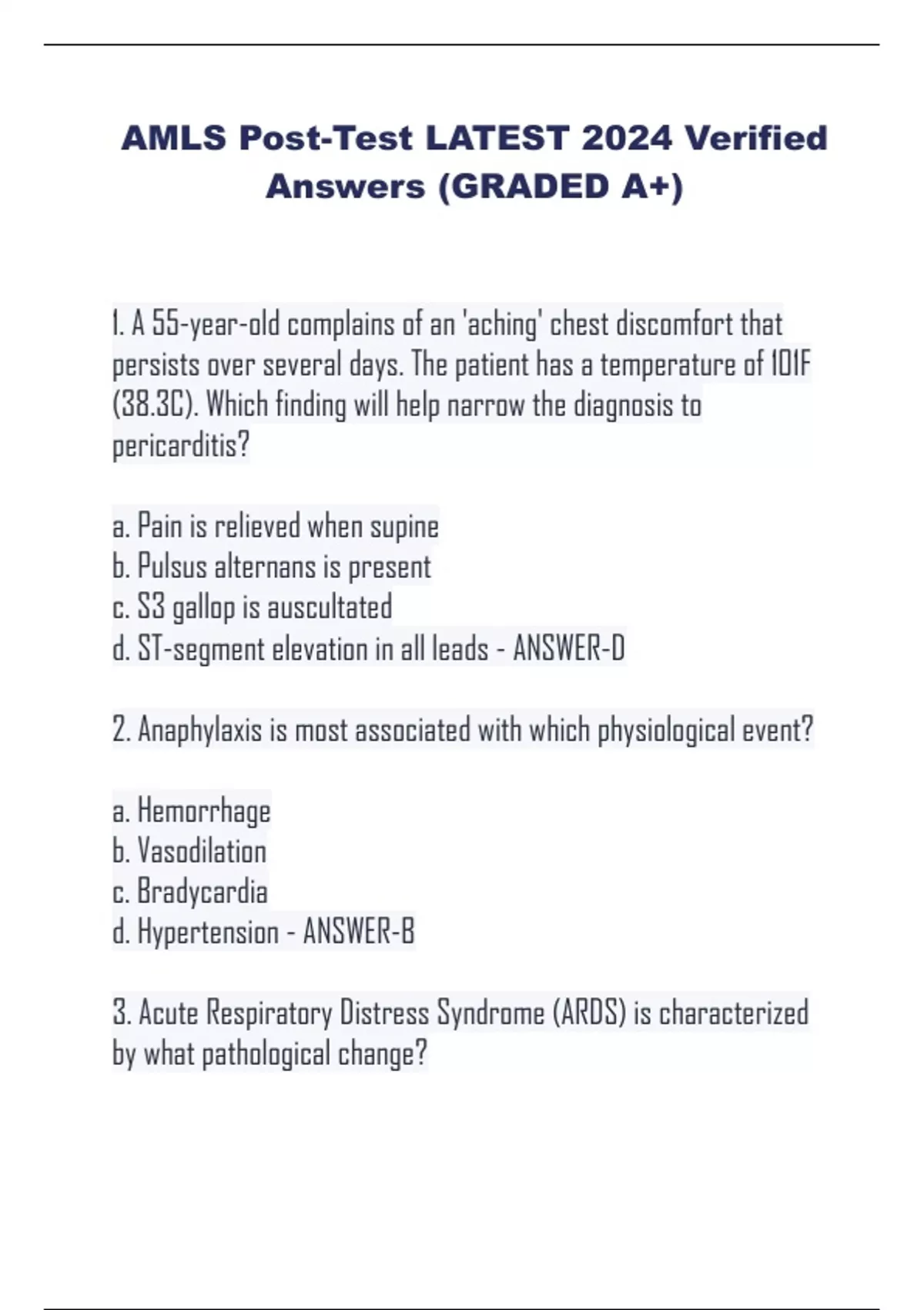AMLS Post-Test LATEST 2024 Verified Answers (GRADED A+)