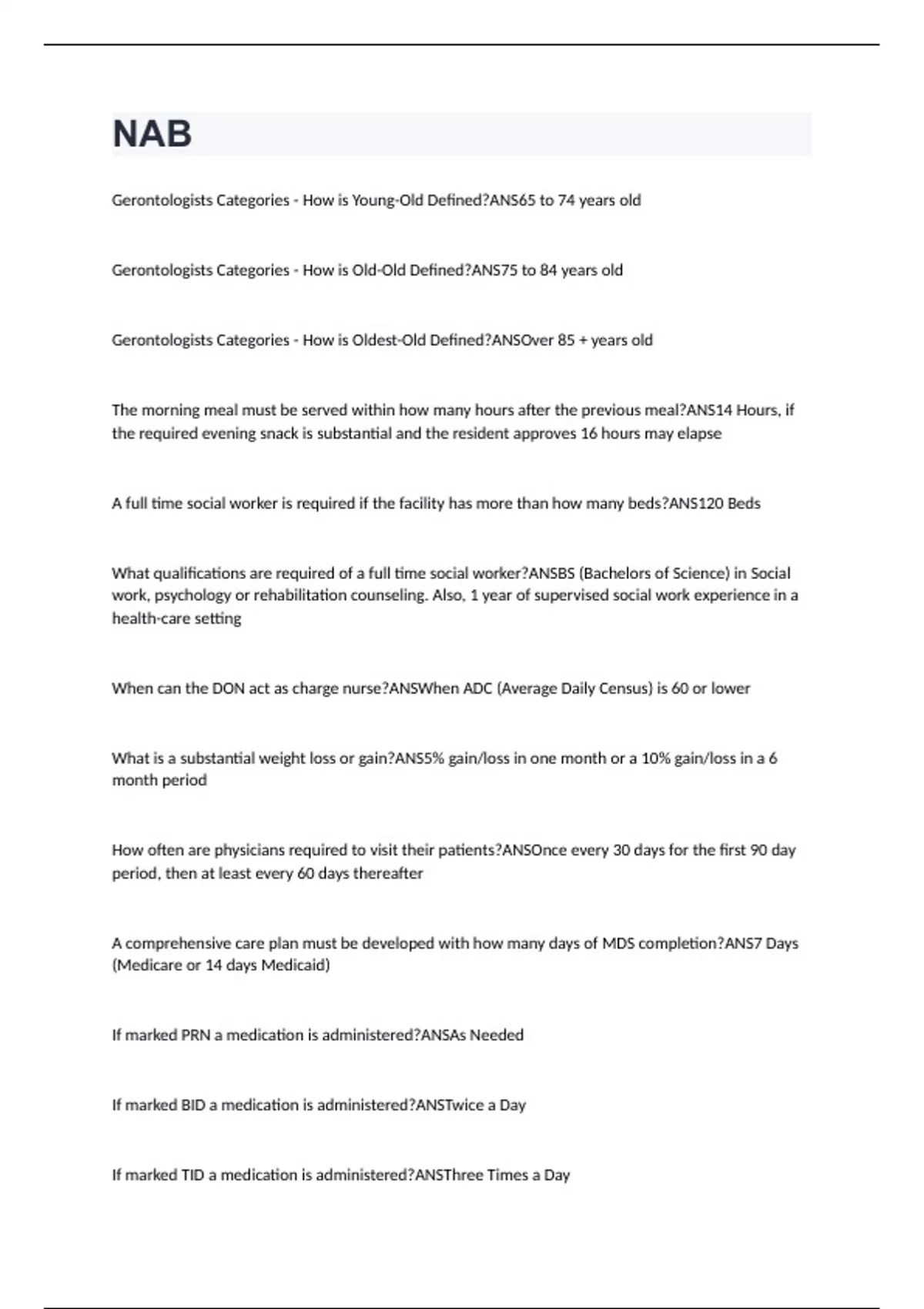 NAB Exam Questions With Correct Answers (VERIFIED 100%)