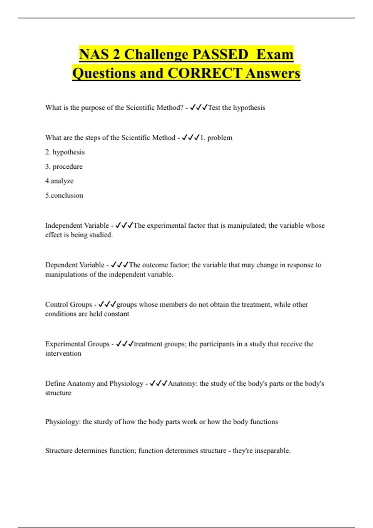 NAS 2 Challenge PASSED Exam Questions and CORRECT Answers