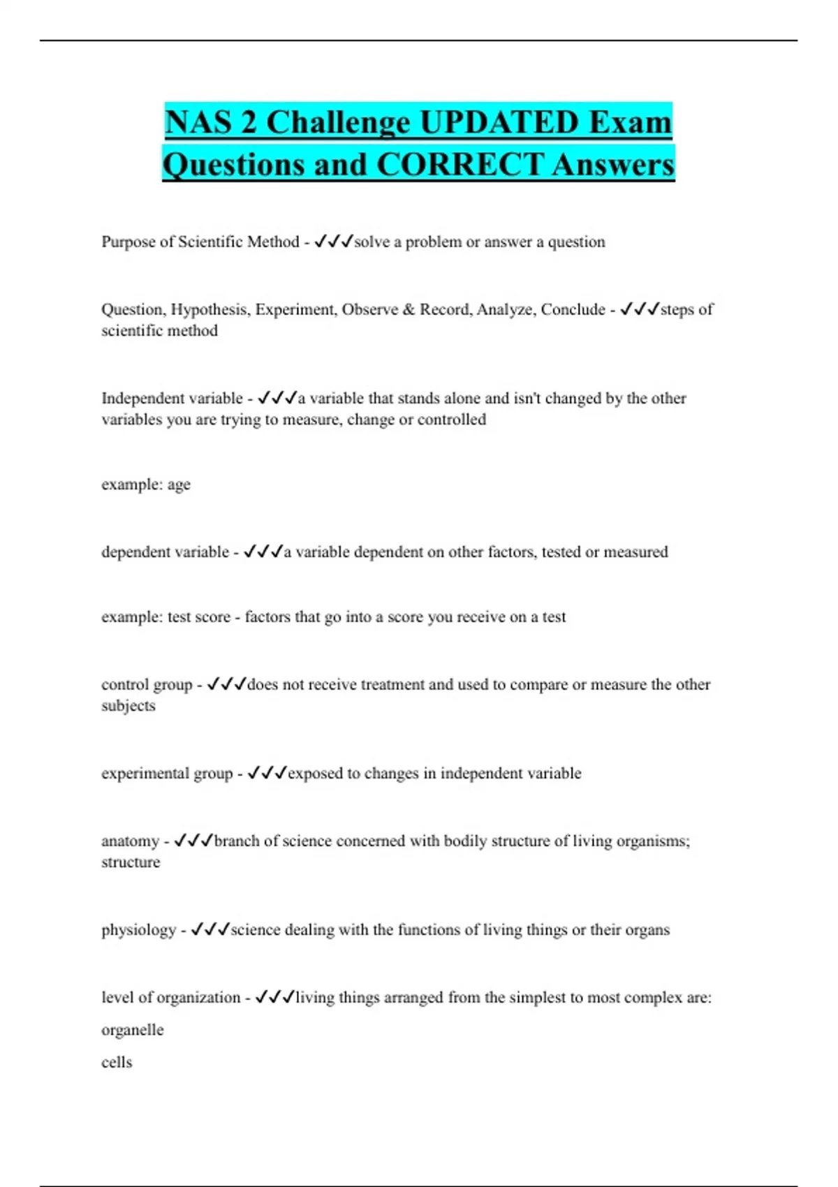 NAS 2 Challenge UPDATED Exam Questions and CORRECT Answers
