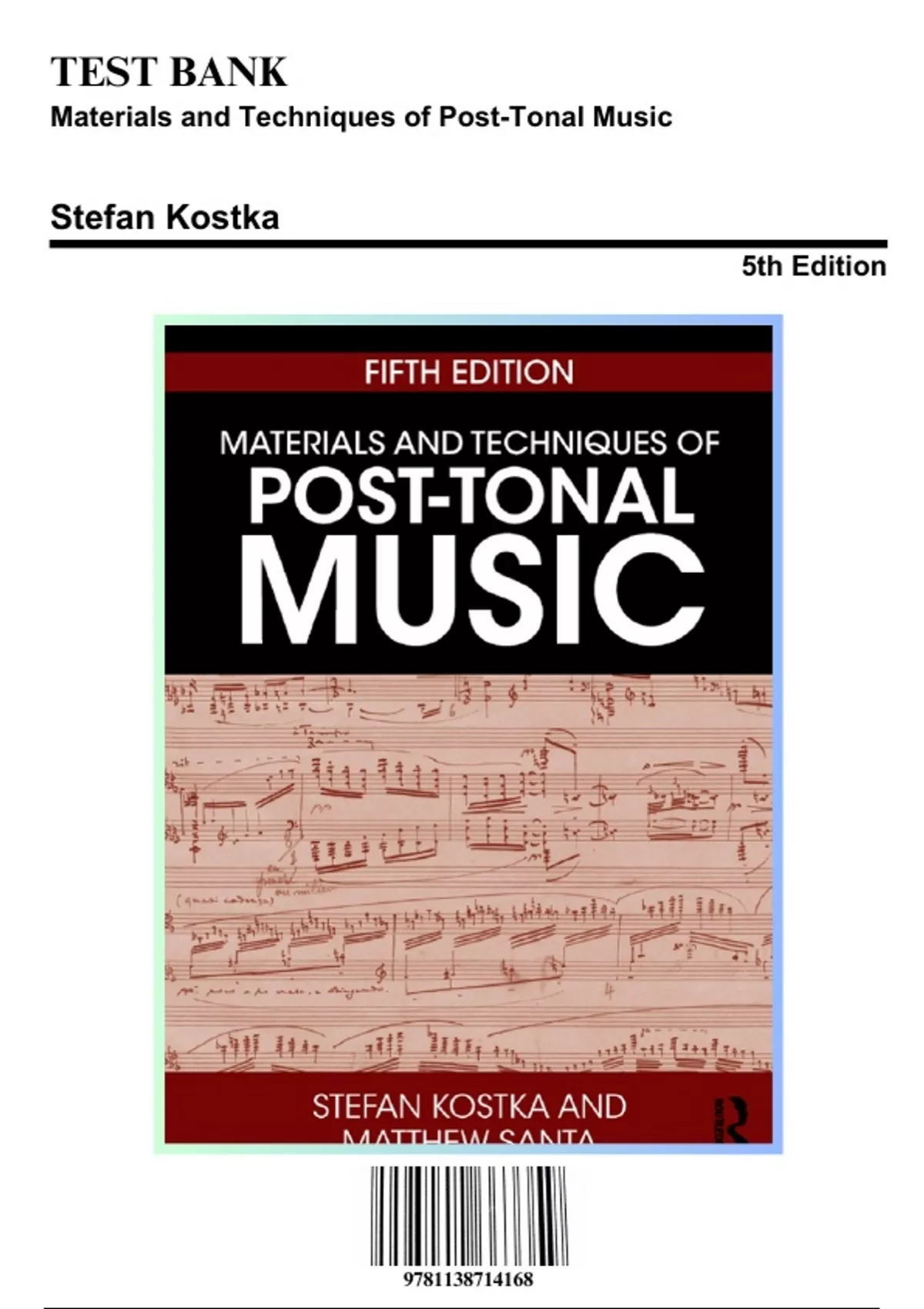 Solution Manual for Materials and Techniques of Post-Tonal Music, 5th Edition by Stefan Kostka, 9781138714168, Covering Chapters 1-15 | Includes Rationales