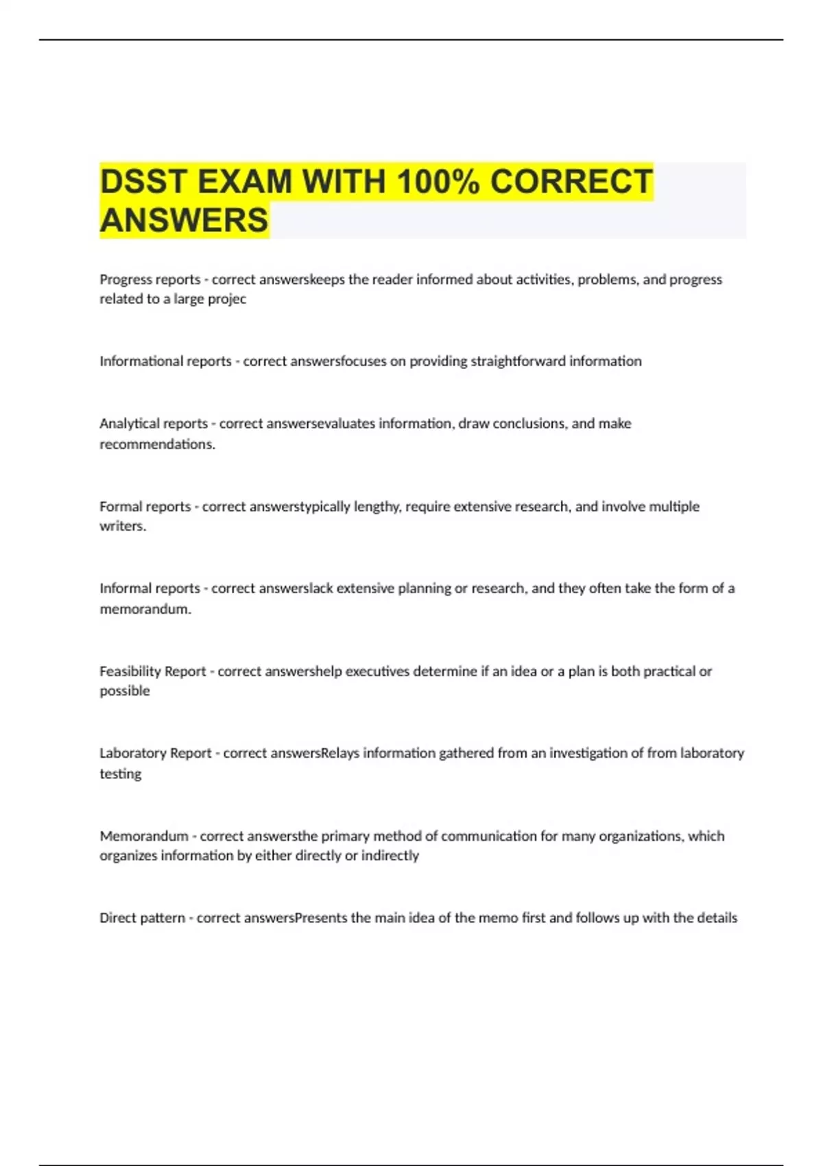dsst exam with 100 correct answers