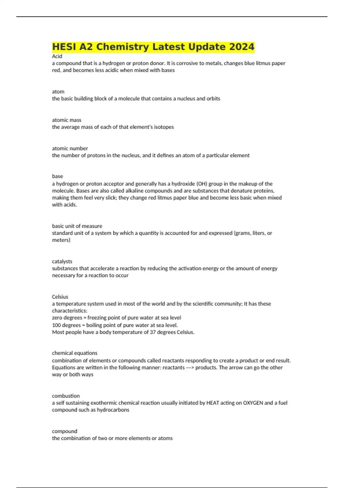 hesi a2 chemistry latest update 2024 acid a compou