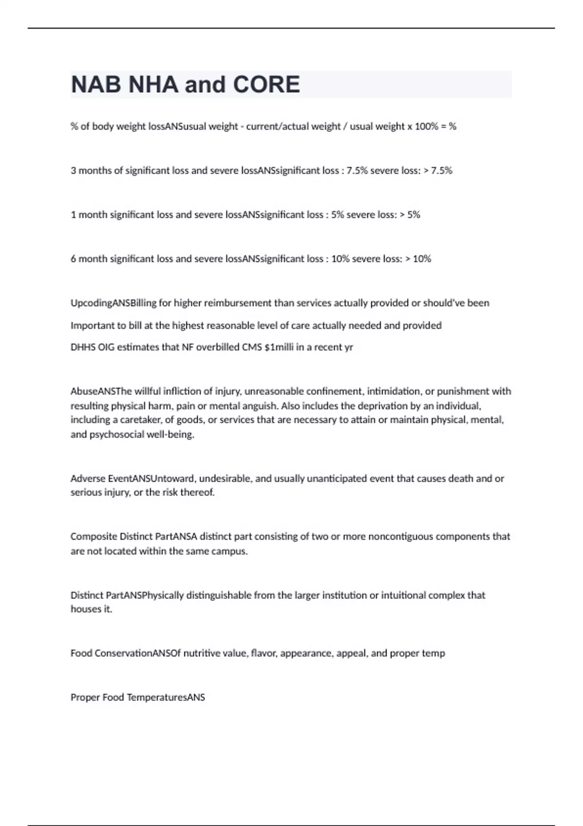 NAB NHA and CORE EXAM STUDY QUESTIONS VERIFIED ANSWERS ( DONE 100%)