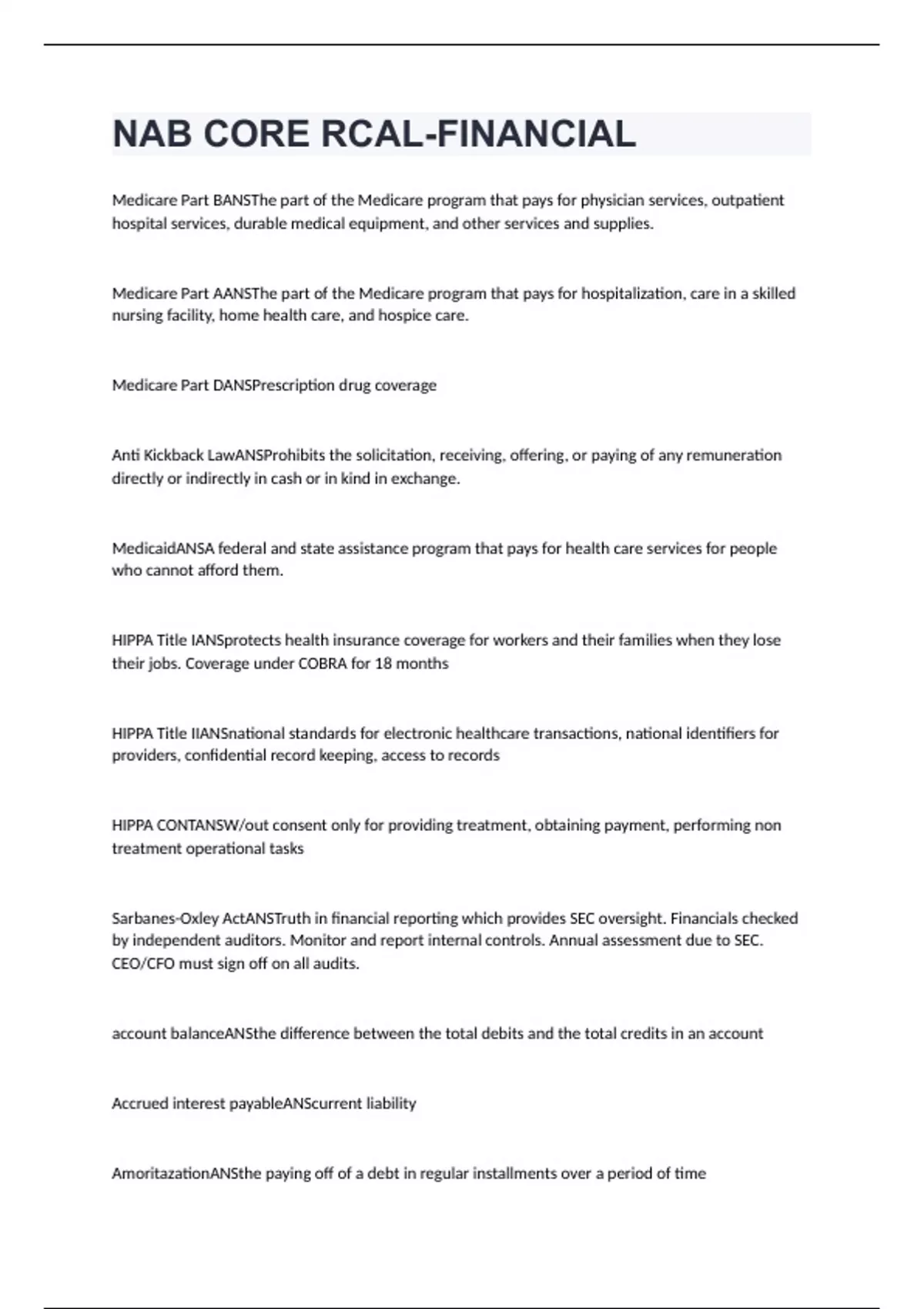 NAB CORE RCAL-FINANCIAL EXAM QUESTIONS AND ANSWERS (VERIFIED ANSWERS)