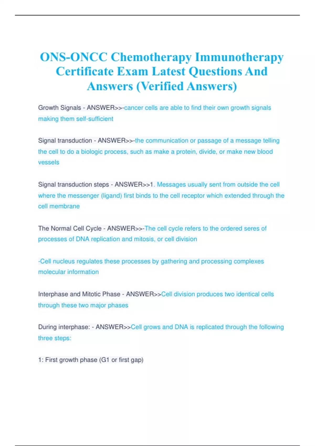ONS-ONCC Chemotherapy Immunotherapy Certificate Exam Latest Questions And Answers (Verified Answers)