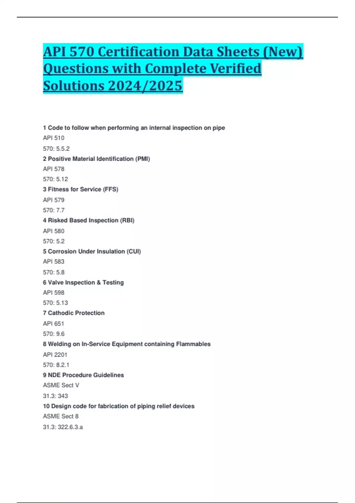 API 570 Certification Data Sheets (New) Questions with Complete Verified Solutions 2024/2025