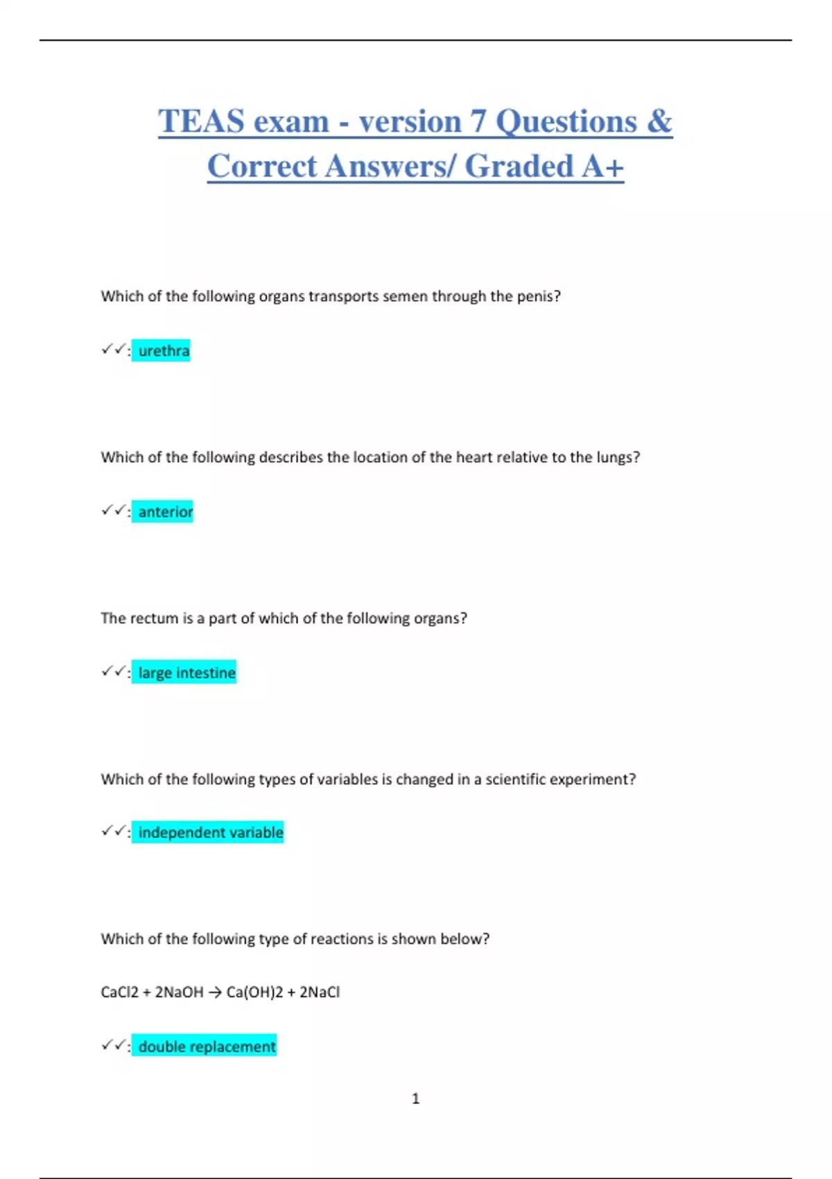 TEAS exam - version 7 Questions & Correct Answers/ Graded A+