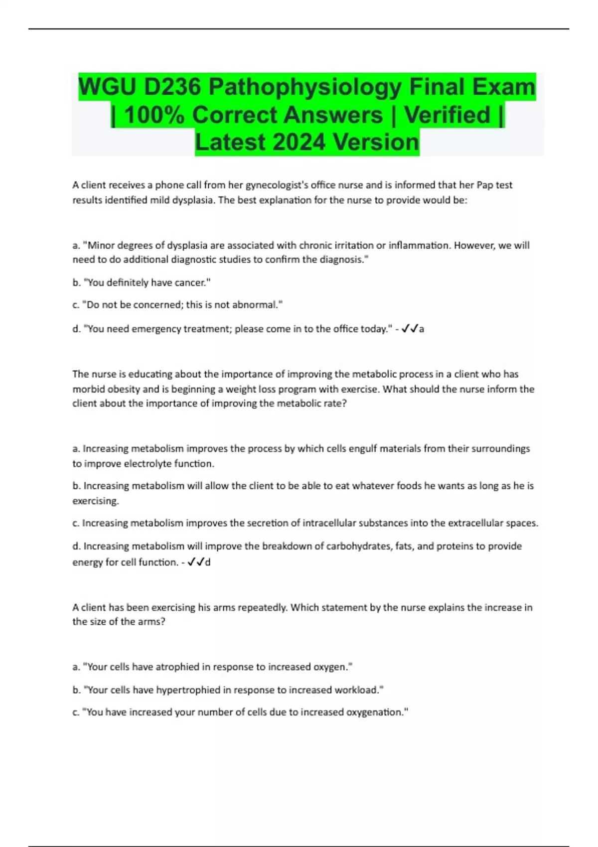 wgu d236 pathophysiology final exam 100 correct