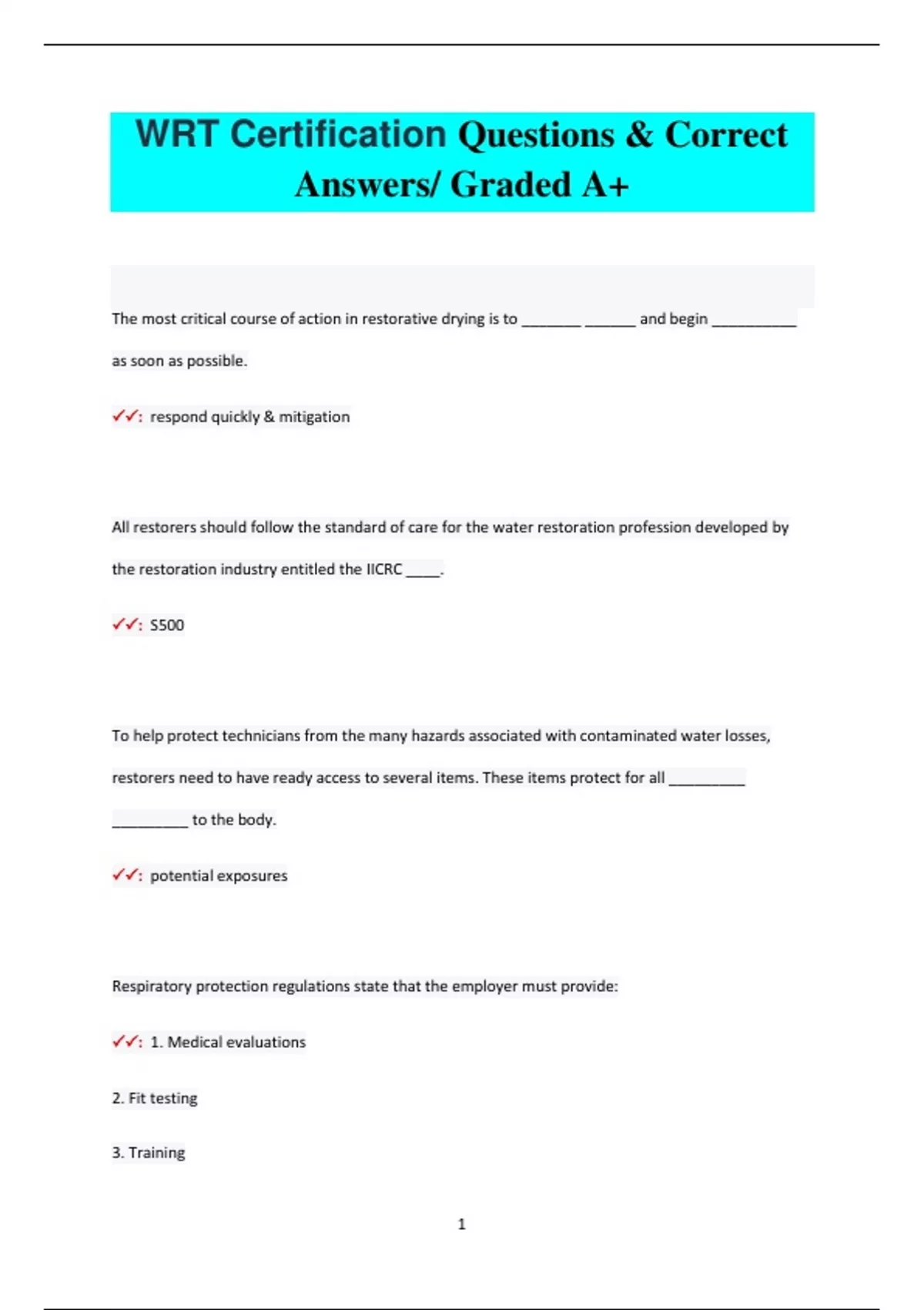 WRT Certification QuestionWRT Certification Questions & Correct Answers/ Graded A+s & Correct Answers/ Graded A+