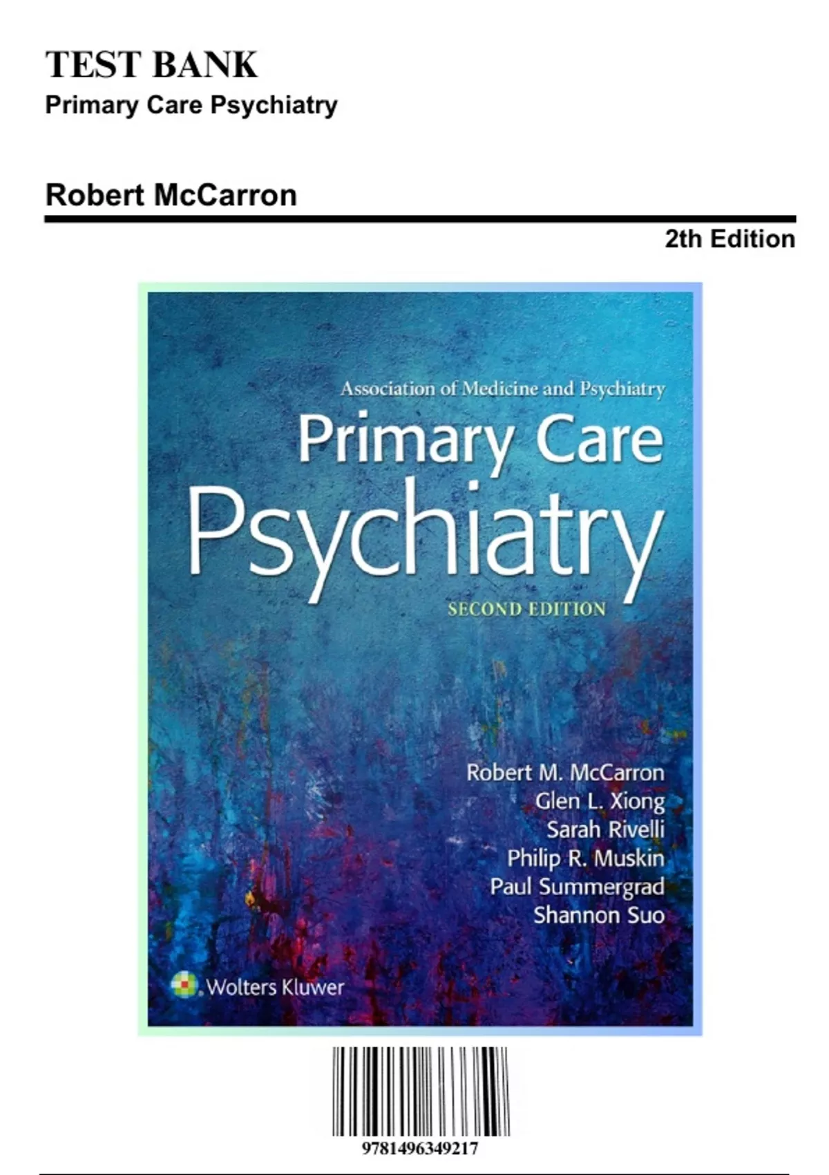 Test Bank for Primary Care Psychiatry, 2nd Edition by Robert McCarron, 9781496349217, Covering Chapters 1-26 | Includes Rationales