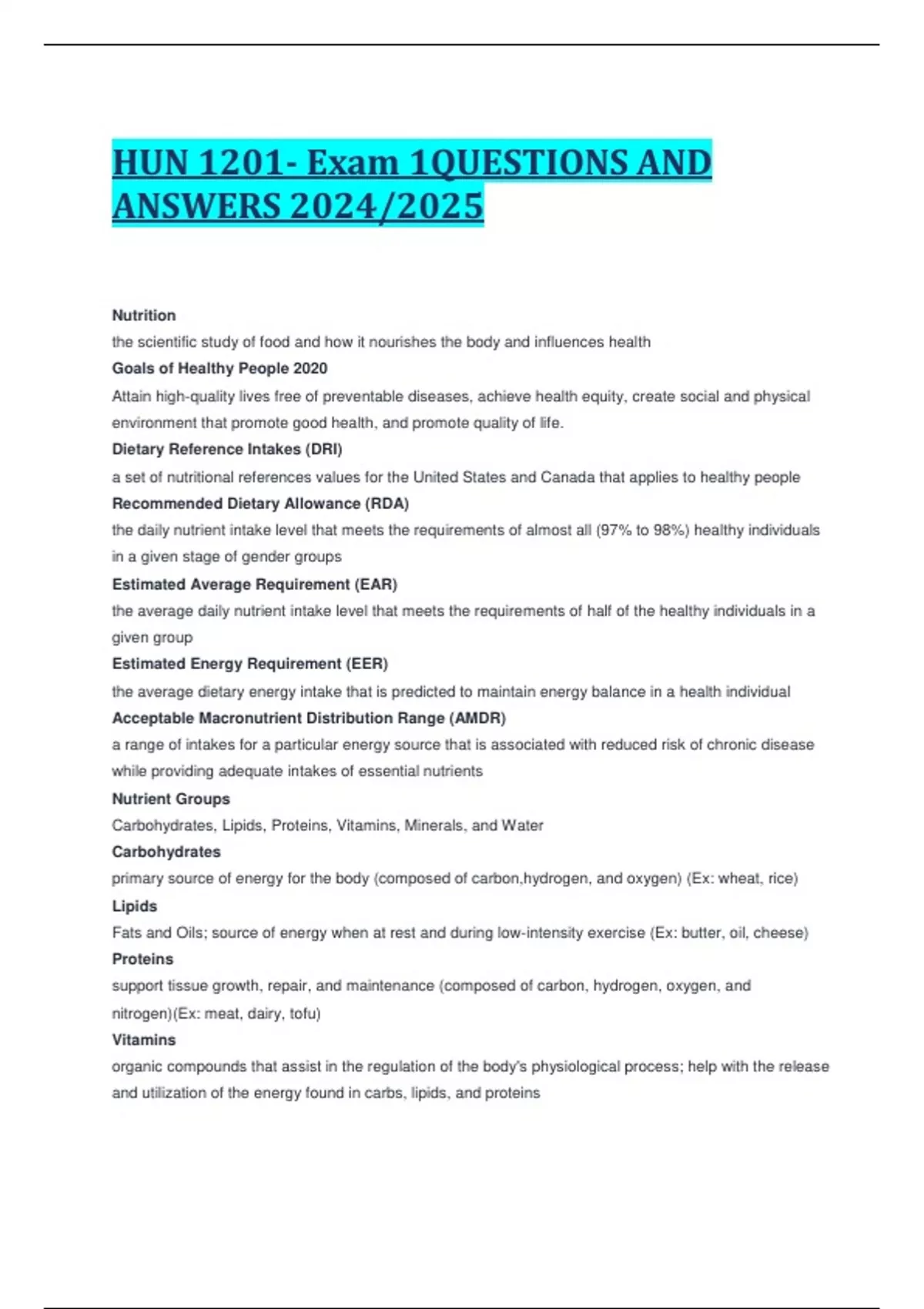 HUN 1201- Exam 1QUESTIONS AND ANSWERS 2024/2025