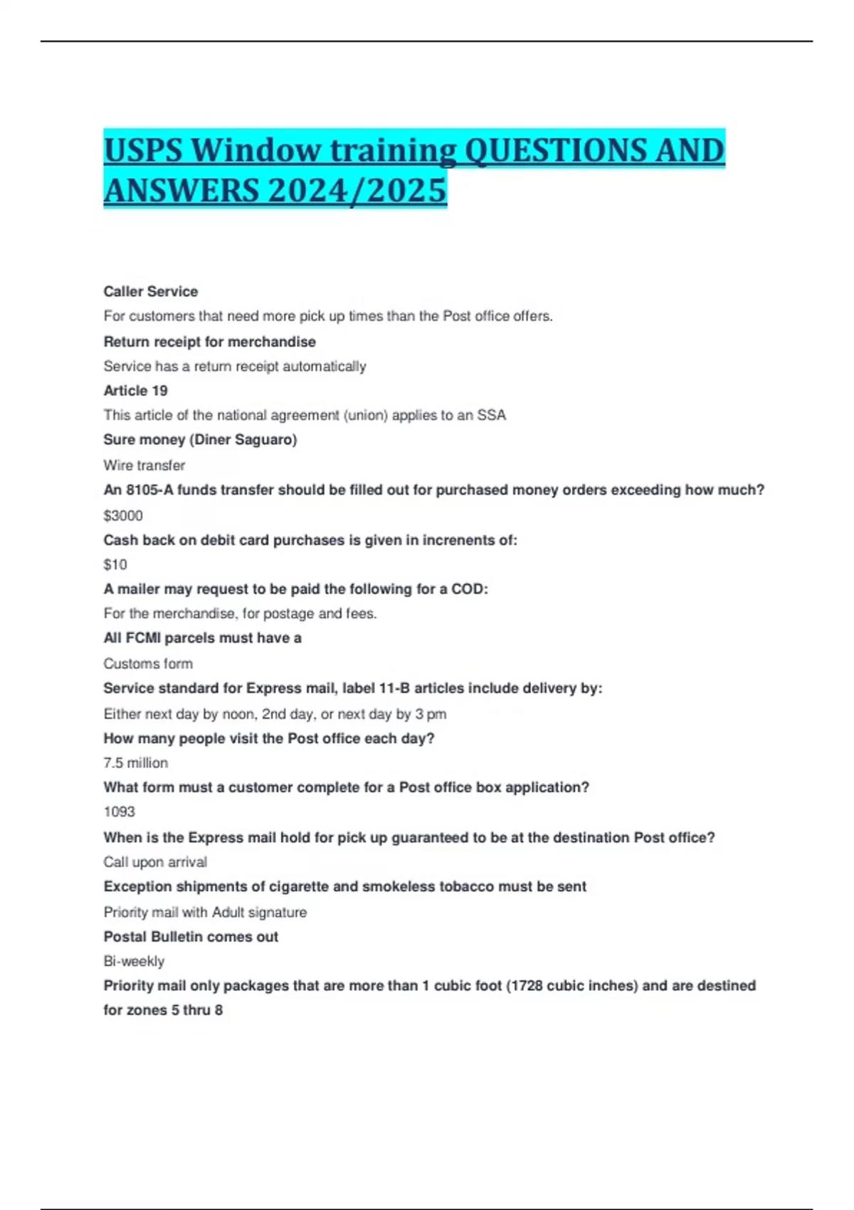 USPS Window training QUESTIONS AND ANSWERS 2024/2025