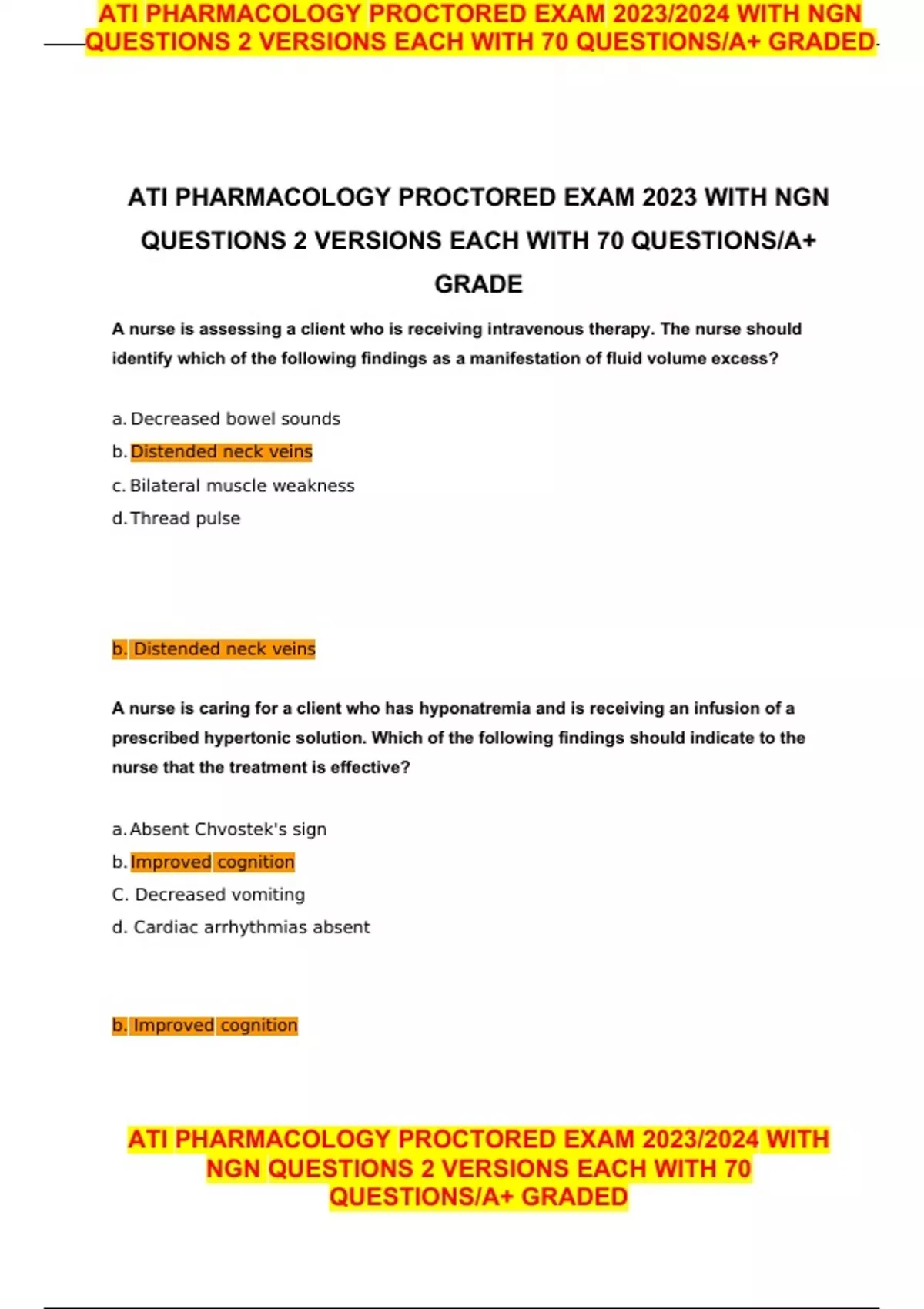 ATI PHARMACOLOGY PROCTORED EXAM 2023/2024 WITH NGN QUESTIONS 2 VERSIONS EACH WITH 70 QUESTIONS/A+ GRADED