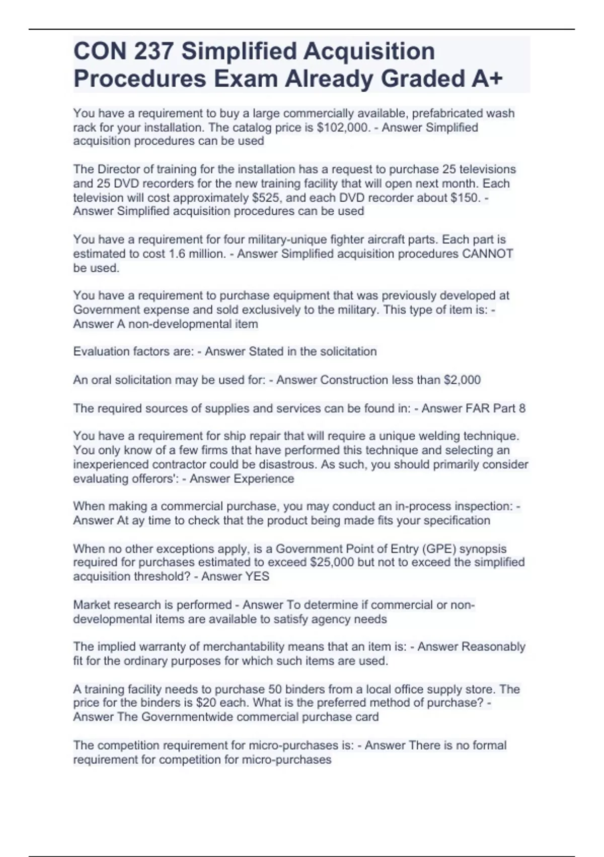 CON 237 Simplified Acquisition Procedures Exam Already Graded A+.