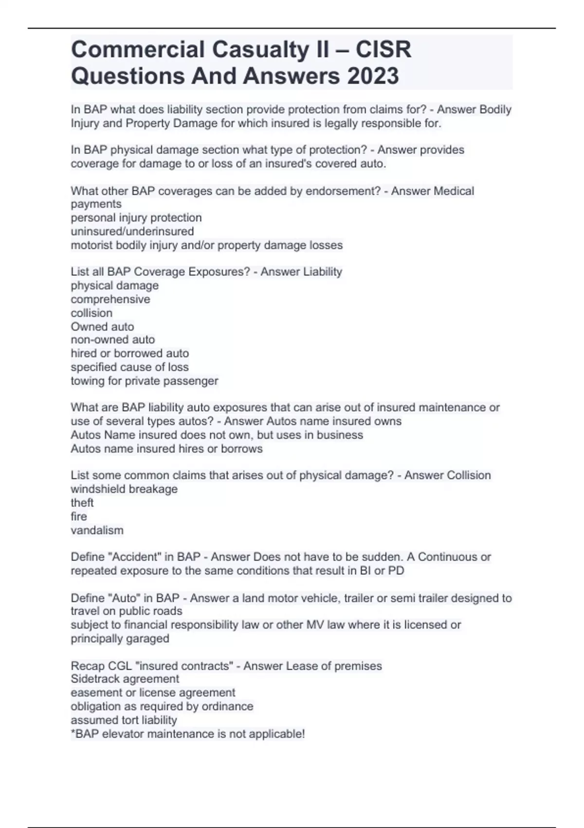 Commercial Casualty II – CISR Questions And Answers 2023.