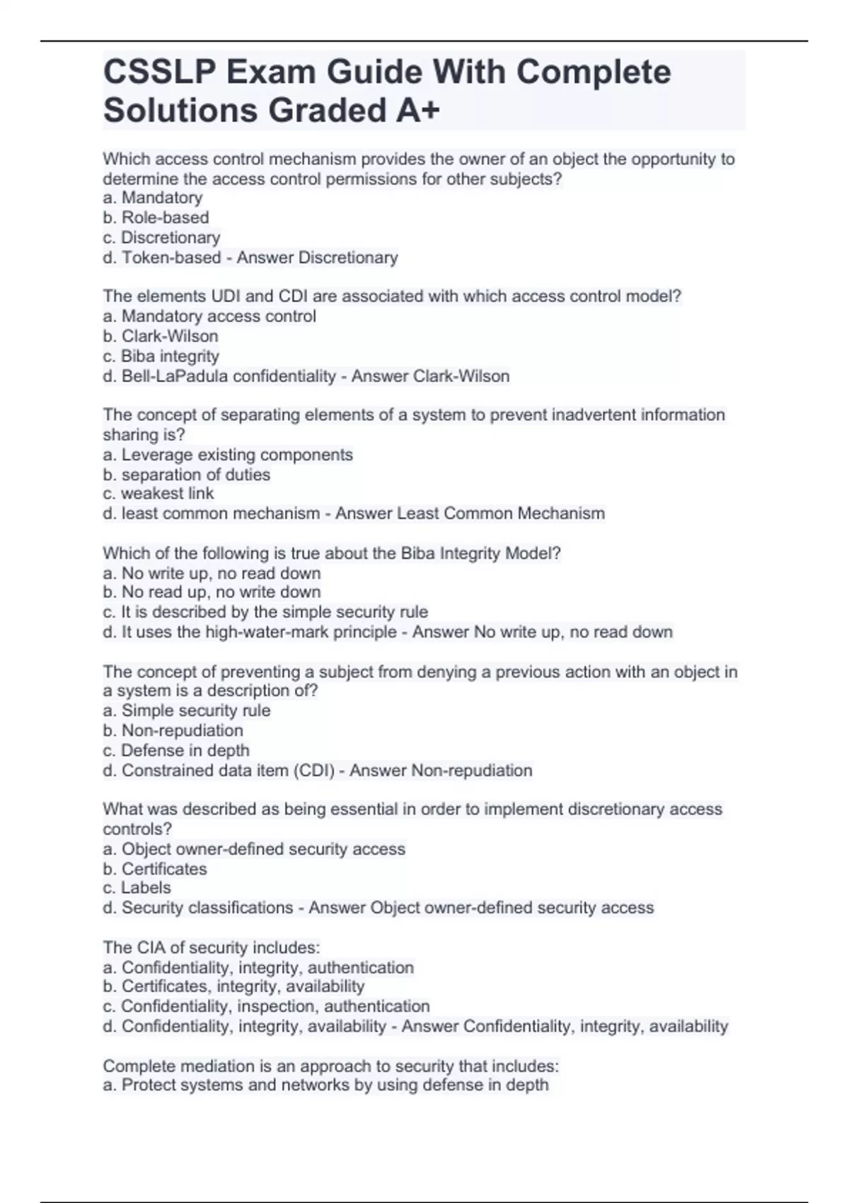 CSSLP Exam Guide With Complete Solutions Graded A+.
