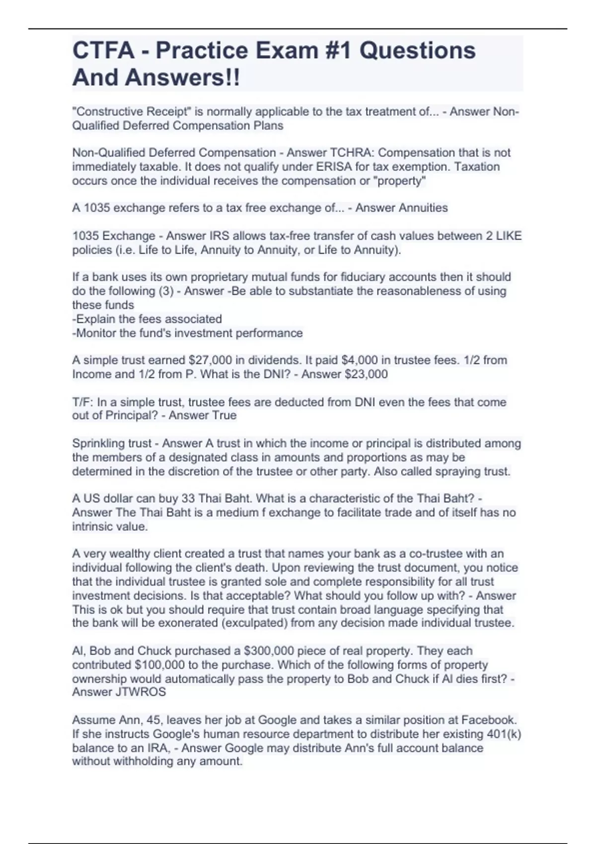 CTFA - Practice Exam #1 Questions And Answers!!.