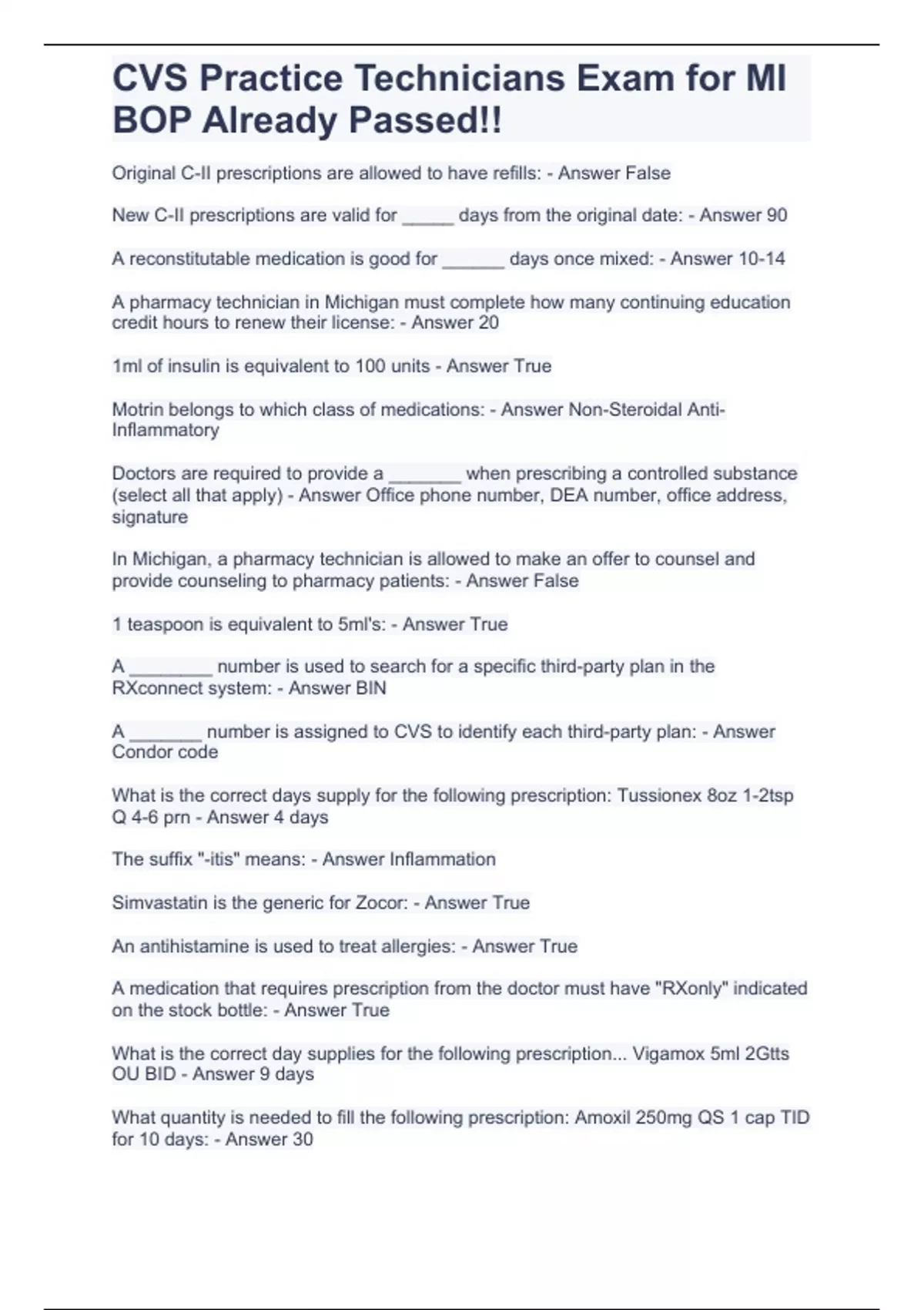 cvs practice technicians exam for mi bop already p