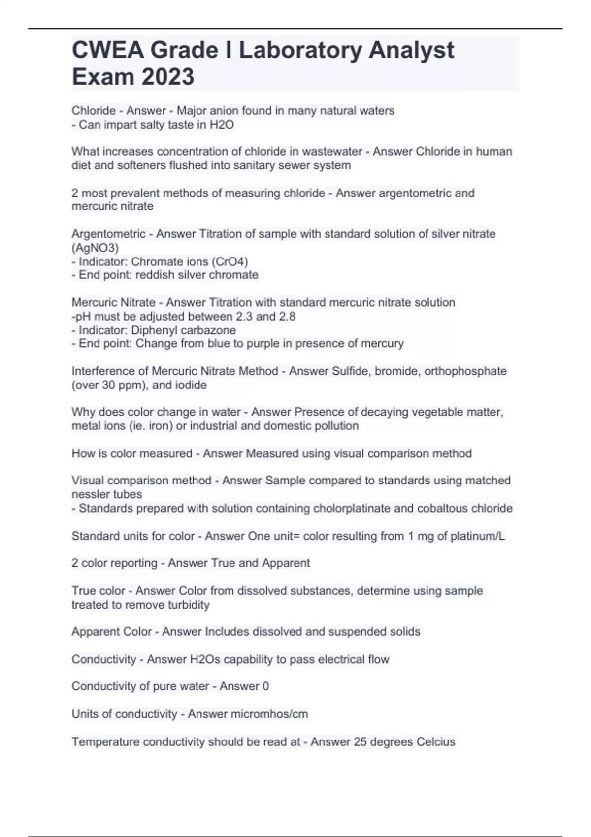 CWEA Grade I Laboratory Analyst Exam 2024.