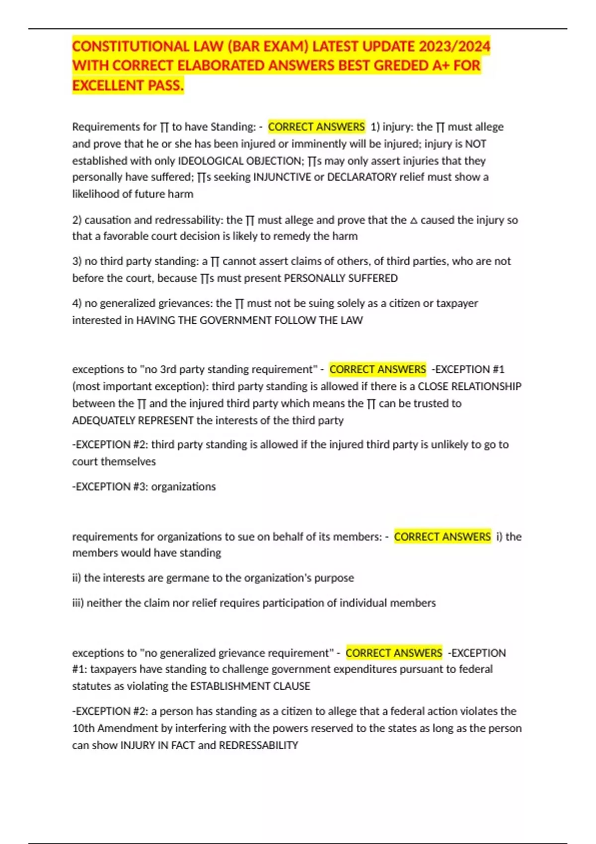 CONSTITUTIONAL LAW (BAR EXAM) LATEST UPDATE 2023/2024 WITH CORRECT ELABORATED ANSWERS BEST GREDED A+ FOR EXCELLENT PASS.