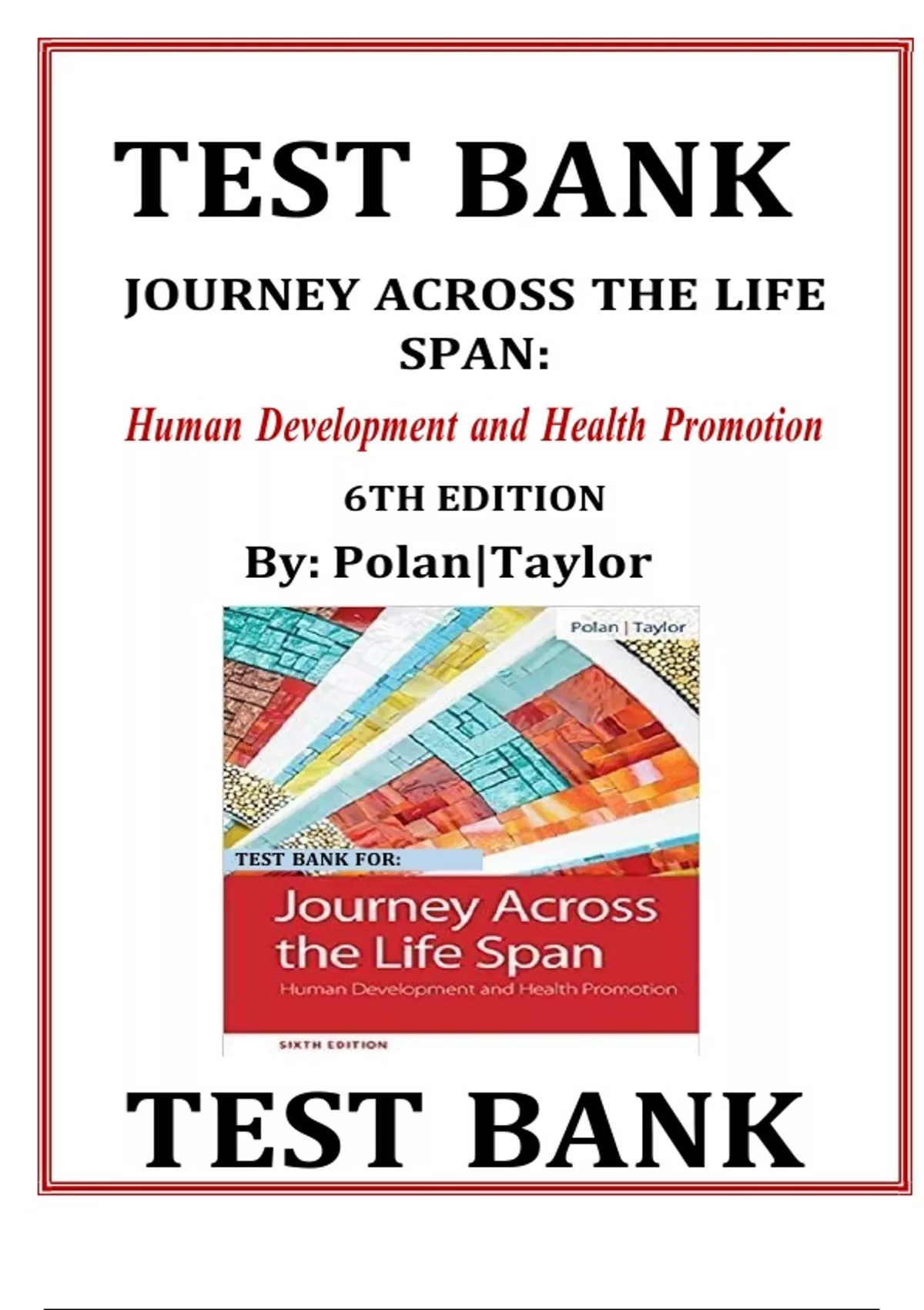 Test Bank - Journey Across the Life Span: Human Development and Health Promotion, 6th Edition (Polan, 2020), Chapter 1-14 | All Chapters. Table of Contents: Chapter 1. Healthy Lifestyles Chapter 2. Communication Chapter 3. Culture Chapter 4. The Family Chapter 5. Theories of Growth and Development Chapter 6. Prenatal Period to 1 Year Chapter 7. Toddlerhood Chapter 8. Preschool Chapter 9. School Age Chapter 10. Puberty and Adolescence Chapter 11. Early Adulthood Chapter 12. Middle Adulthood Chapter 13. Late Adulthood Chapter 14. Death and Dying