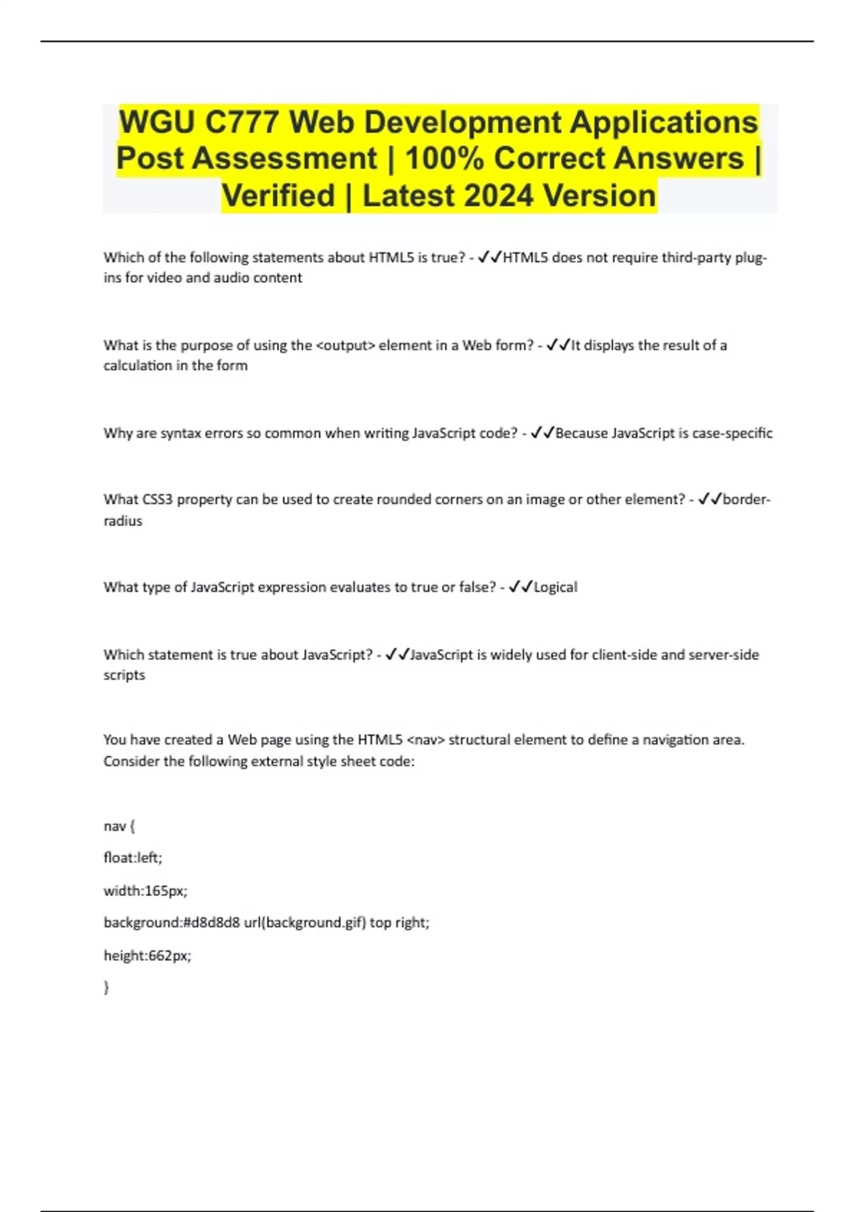 WGU C777 Web Development Applications Post Assessment | 100% Correct Answers | Verified | Latest 2024 Version