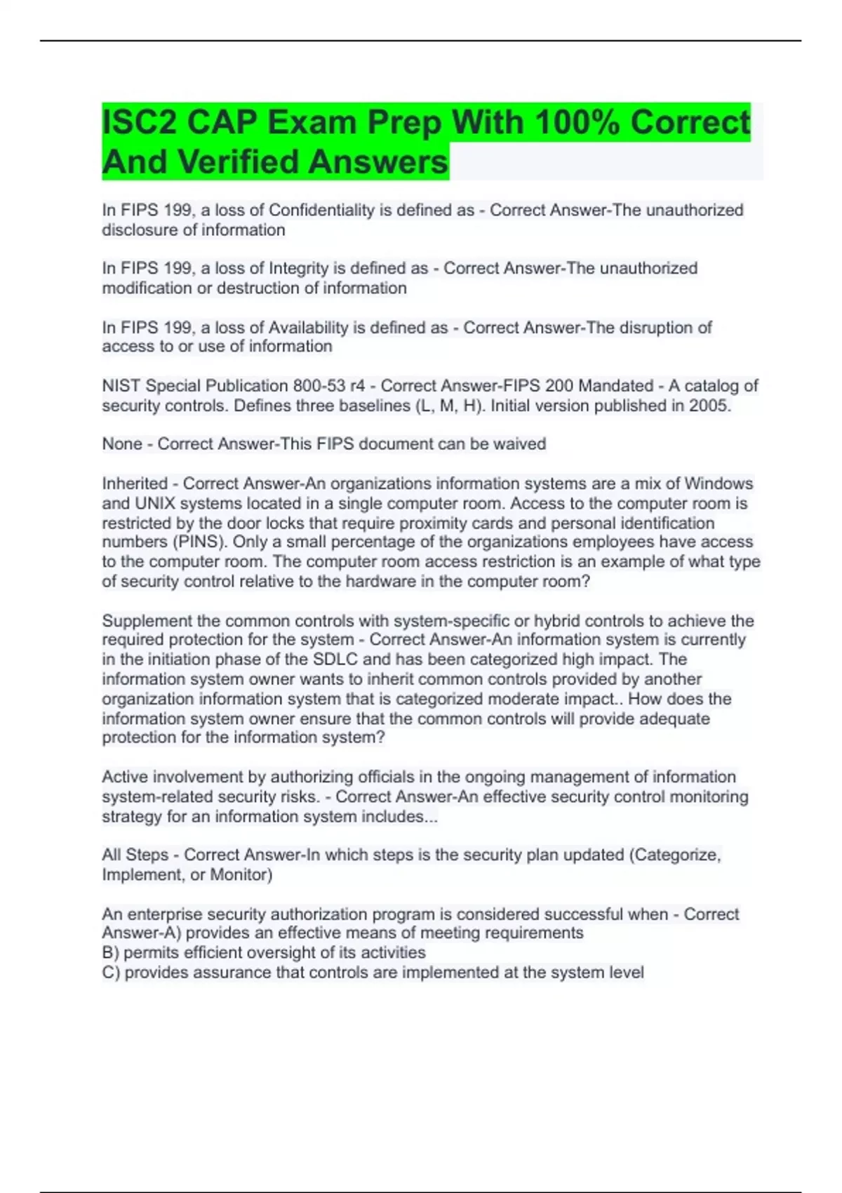 ISC2 CAP Exam Prep With 100% Correct And Verified Answers