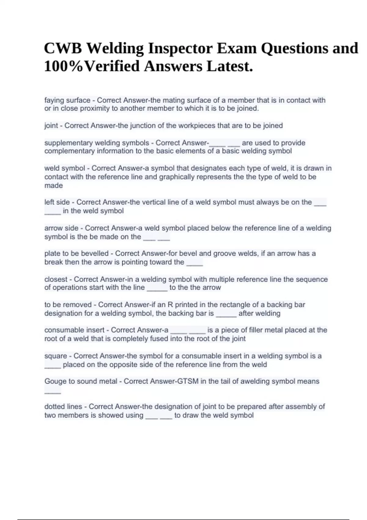 Gouge to sound metal - Correct Answer-GTSM in the tail of awelding symbol means