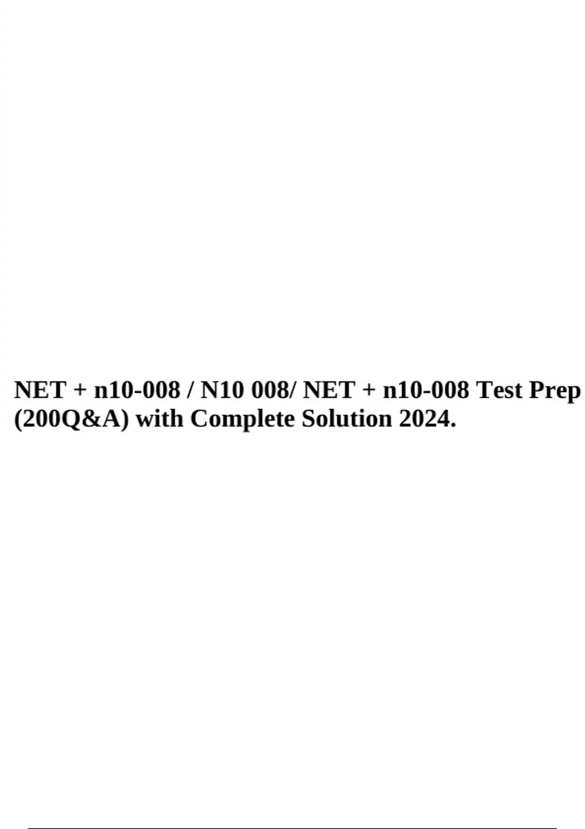 NET + n10-008 / N10 008/ NET + n10-008 Test Prep (200Q&A) with Complete Solution 2024.