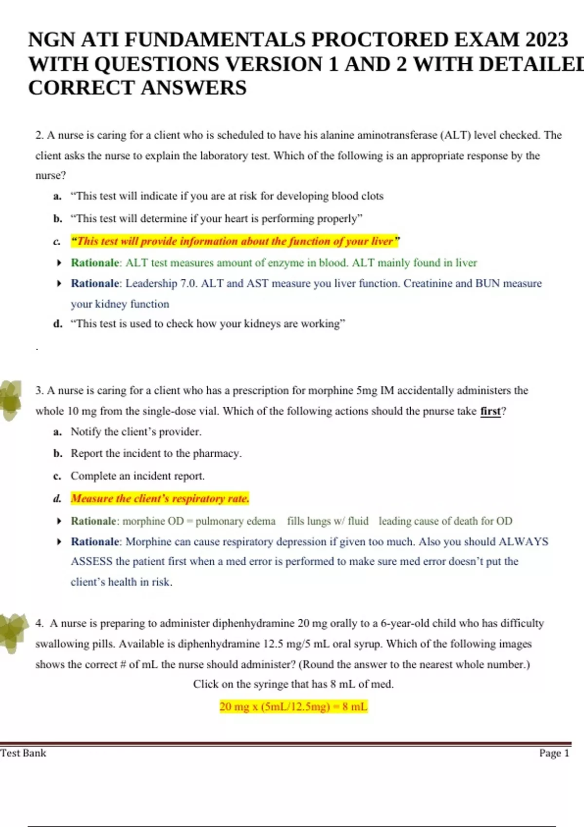 NGN ATI FUNDAMENTALS PROCTORED EXAM 2023 WITH QUESTIONS VERSION 1 AND 2 WITH DETAILED CORRECT ANSWERS