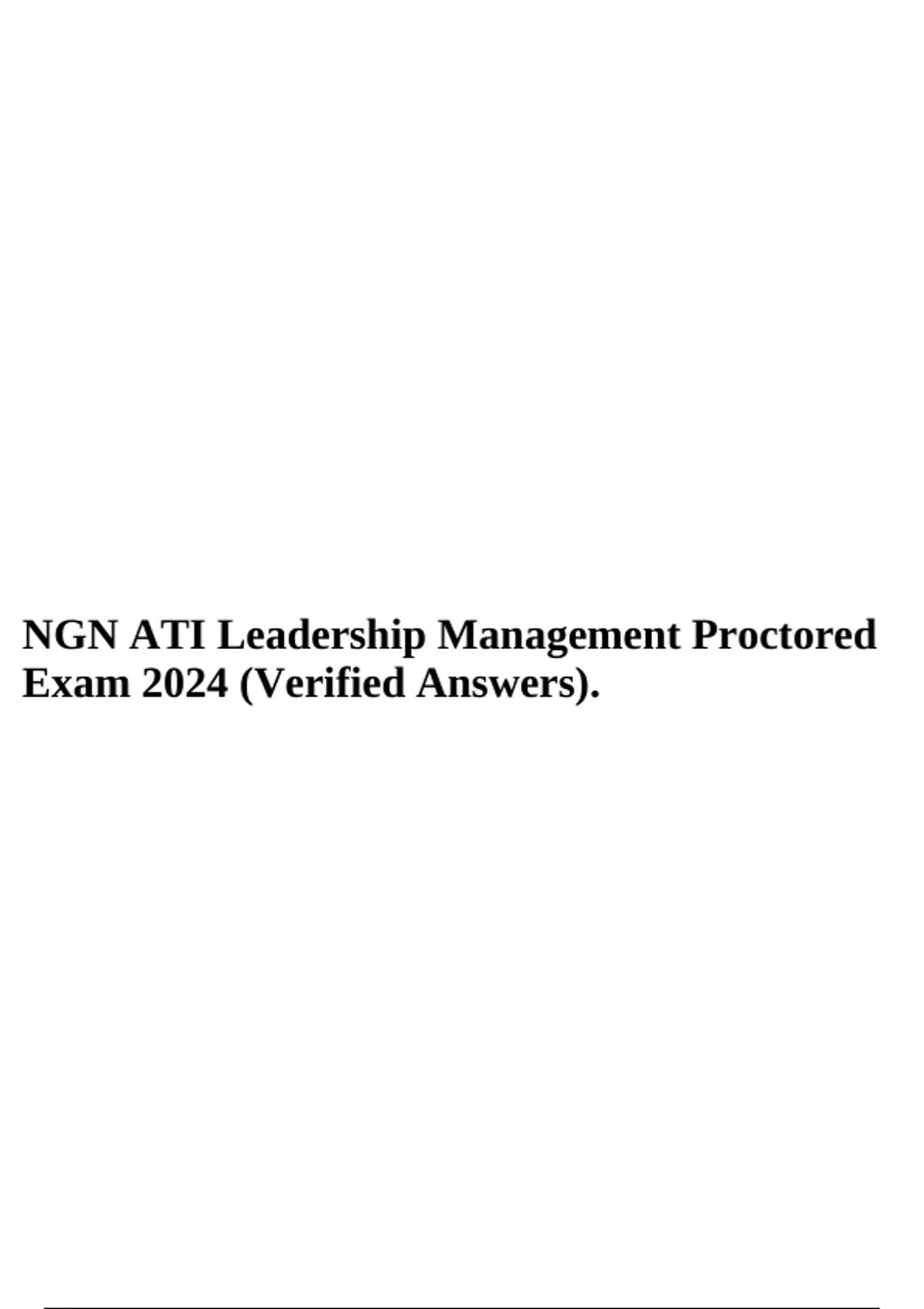 NGN ATI Leadership Management Proctored Exam 2024 (Verified Answers).