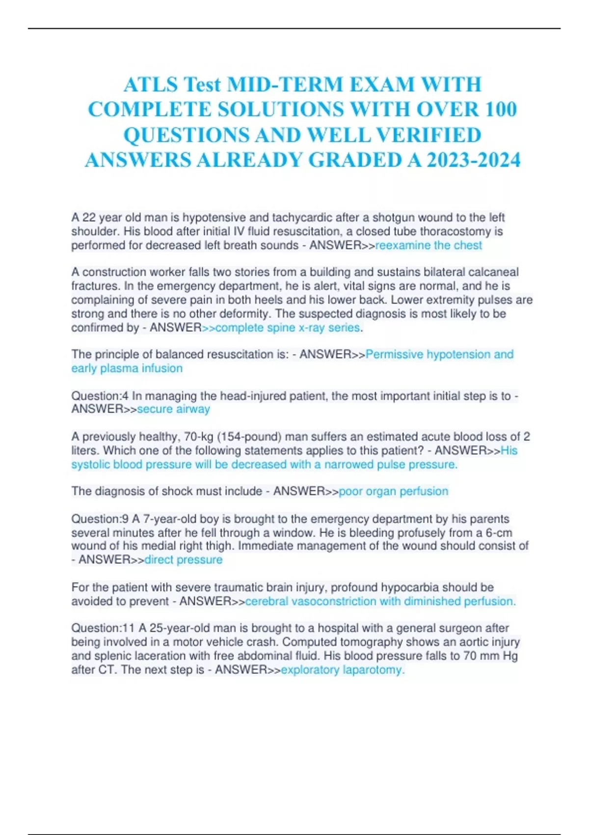 ATLS Test MID-TERM EXAM WITH COMPLETE SOLUTIONS WITH OVER 100 QUESTIONS AND WELL VERIFIED ANSWERS ALREADY GRADED A