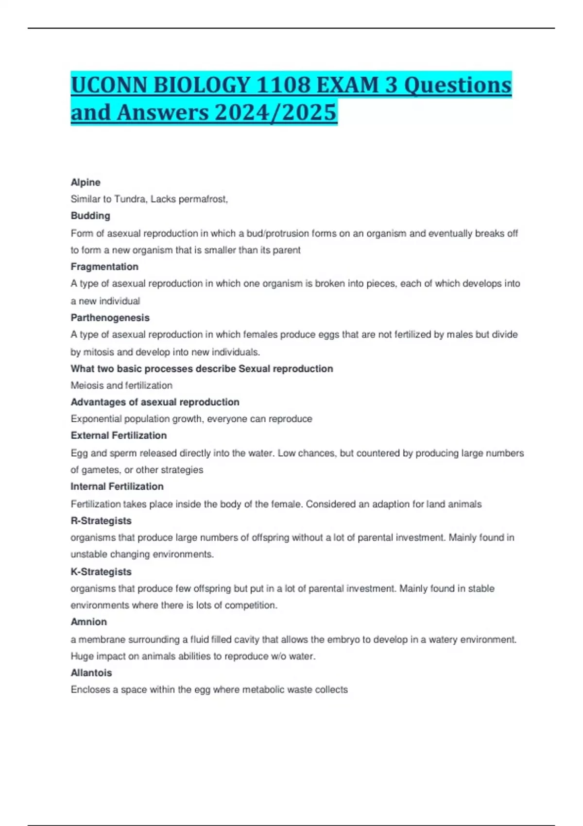 UCONN BIOLOGY 1108 EXAM 3 Questions and Answers 2024/2025