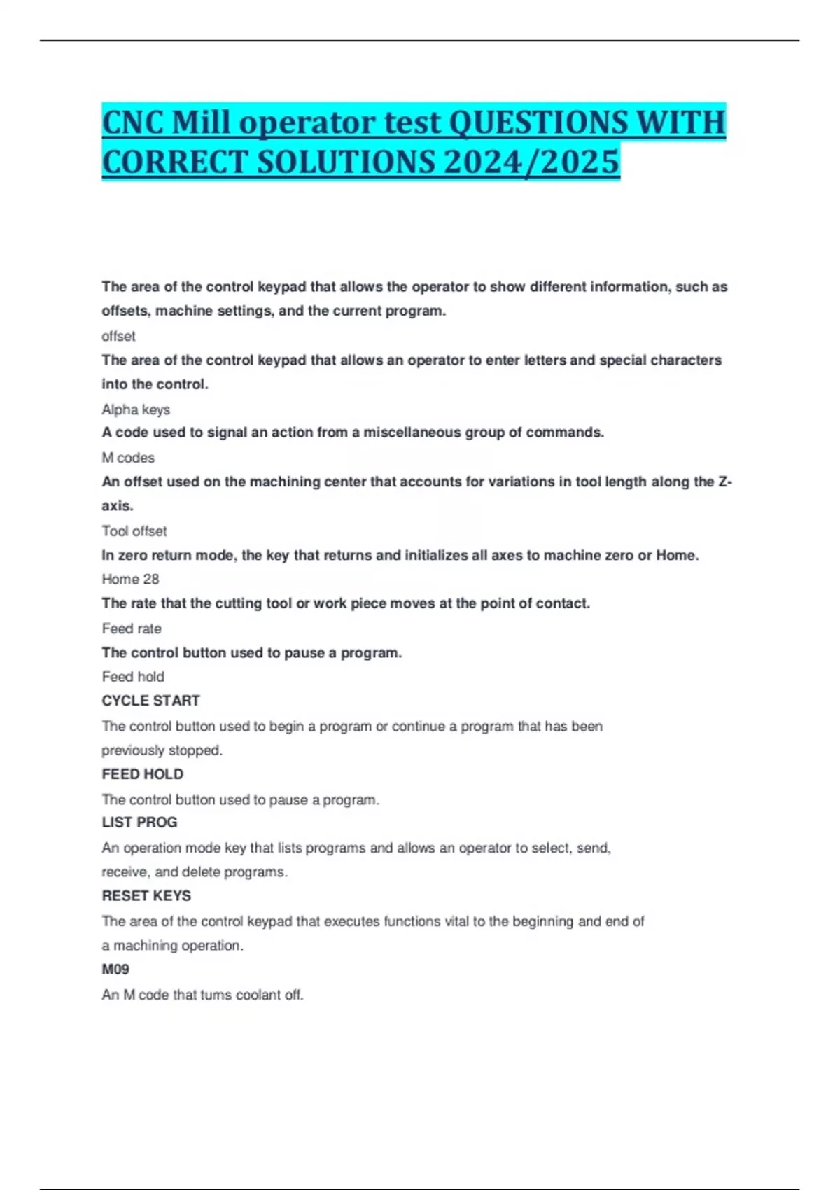 CNC Mill operator test QUESTIONS WITH CORRECT SOLUTIONS 2024/2025