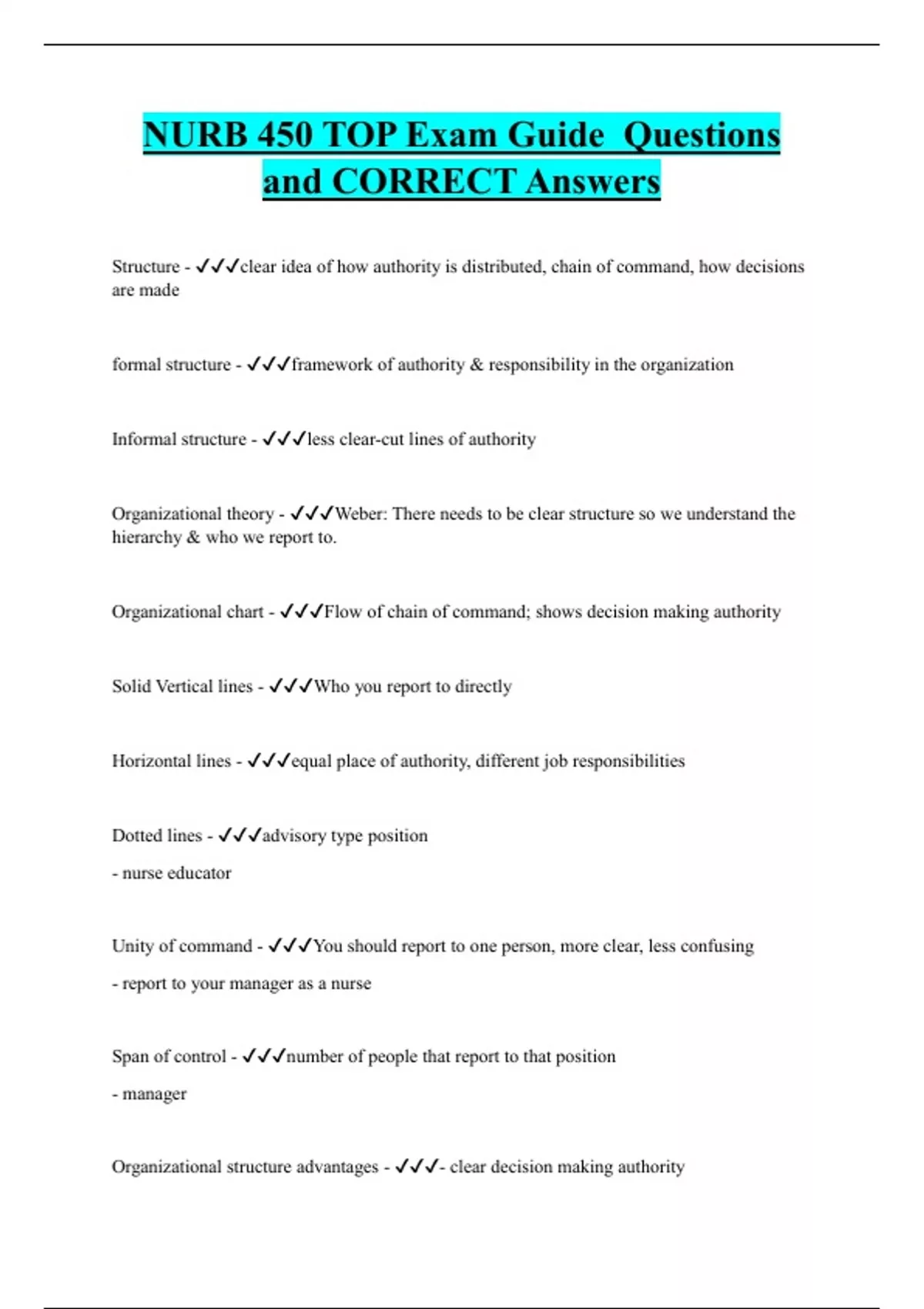 NURB 450 TOP Exam Guide Questions and CORRECT Answers