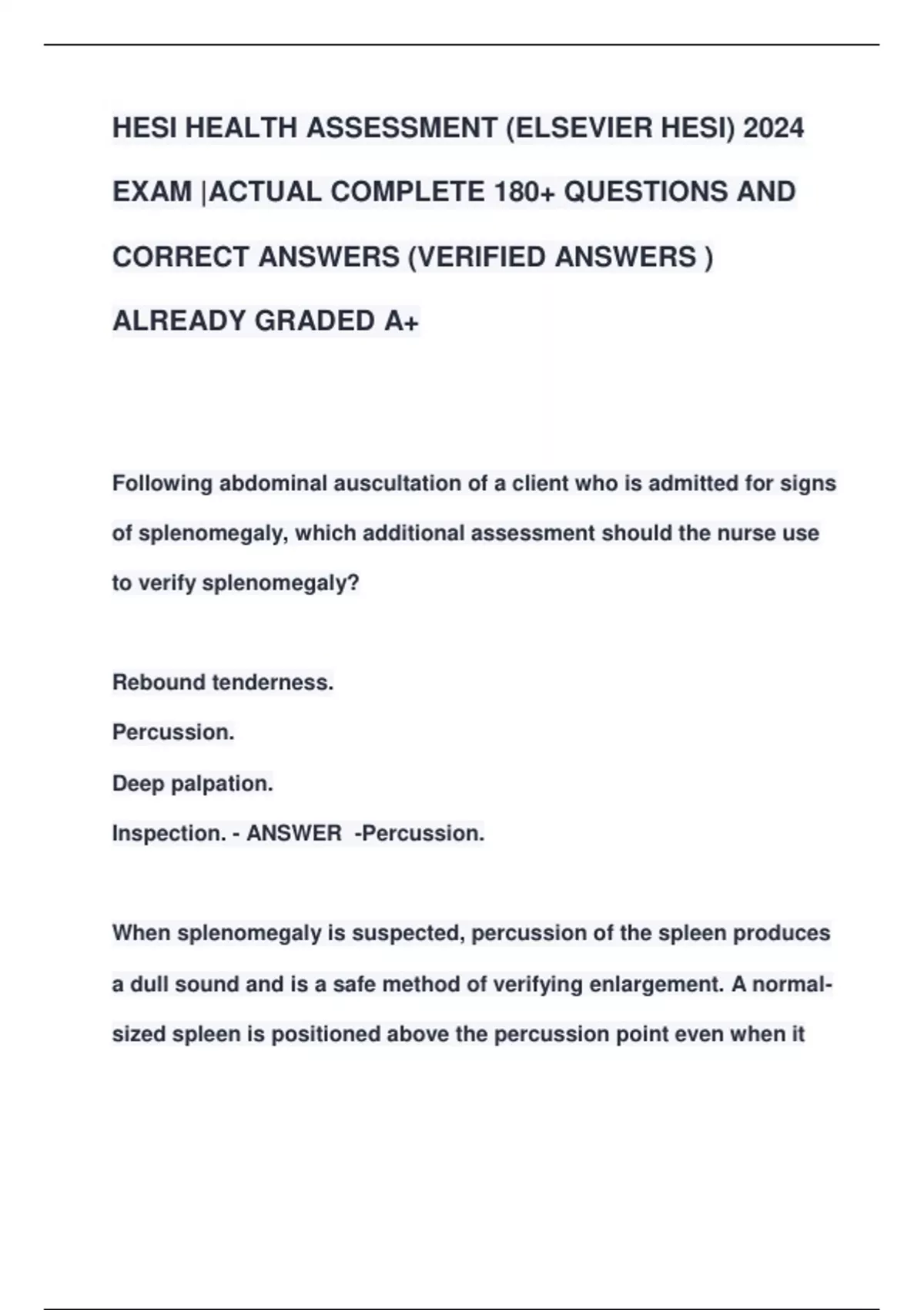 HESI HEALTH ASSESSMENT (ELSEVIER HESI) 2024 EXAM |ACTUAL COMPLETE 180+ QUESTIONS AND CORRECT ANSWERS (VERIFIED ANSWERS ) ALREADY GRADED A+