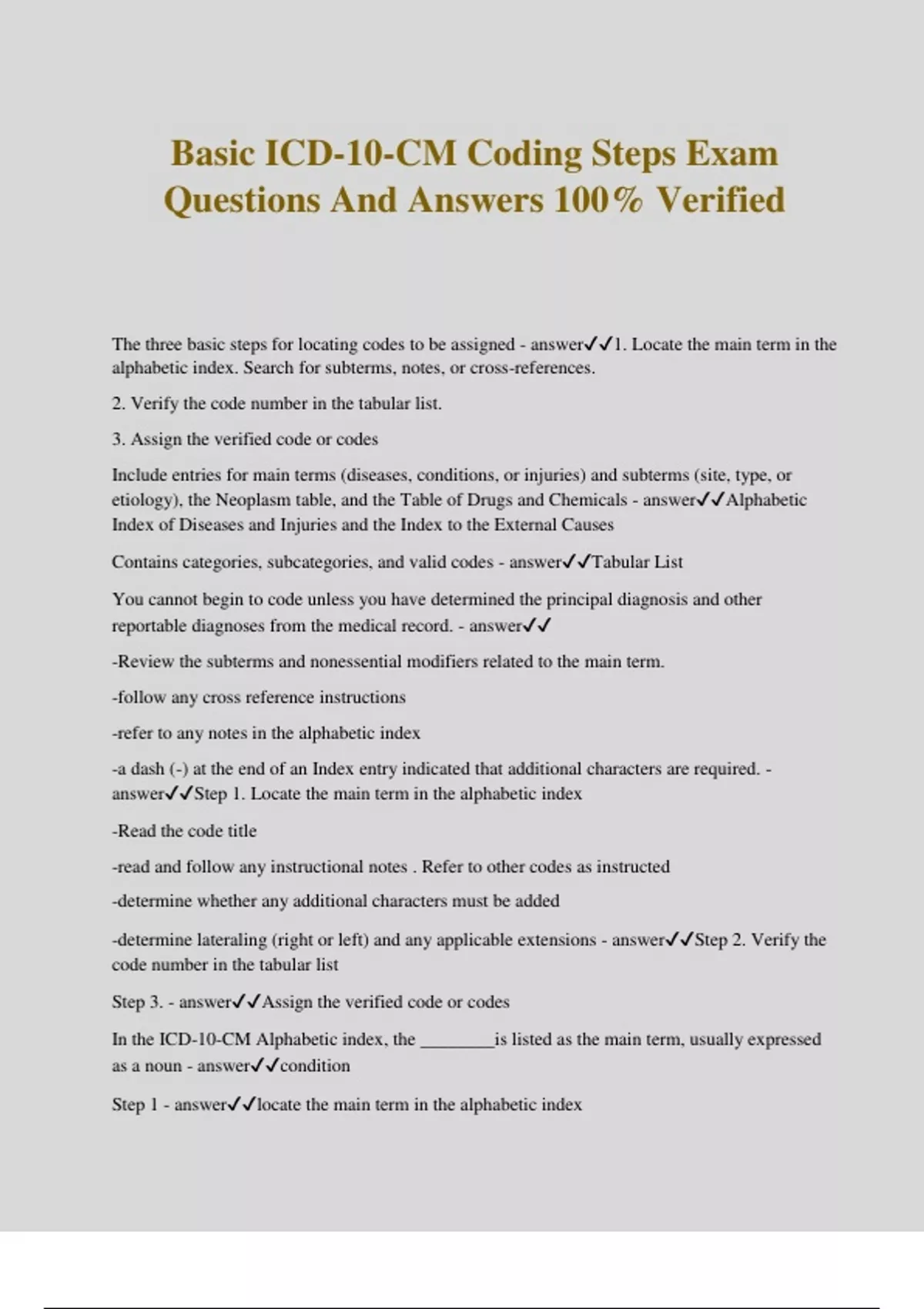 Basic ICD-10-CM Coding Steps Exam Questions And Answers 100% Verified