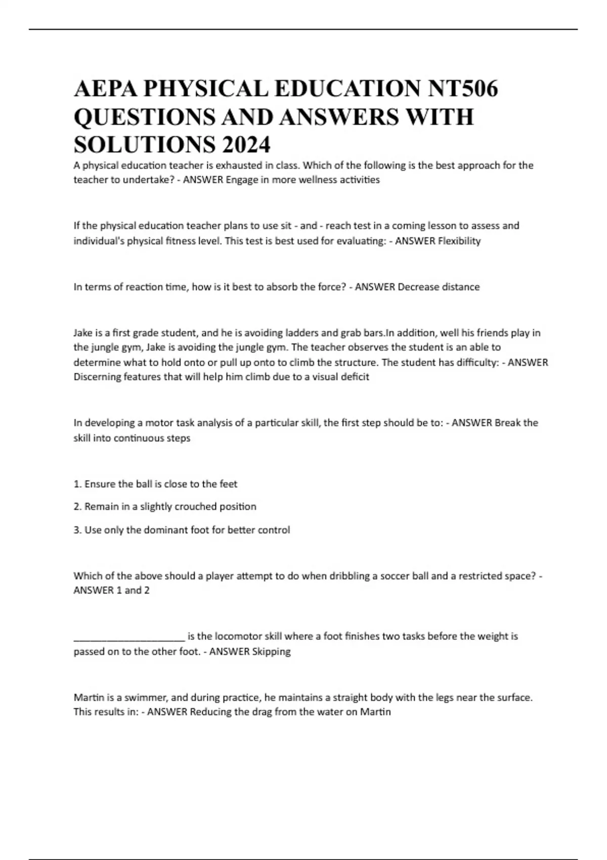 AEPA PHYSICAL EDUCATION NT506 QUESTIONS AND ANSWERS WITH SOLUTIONS 2024