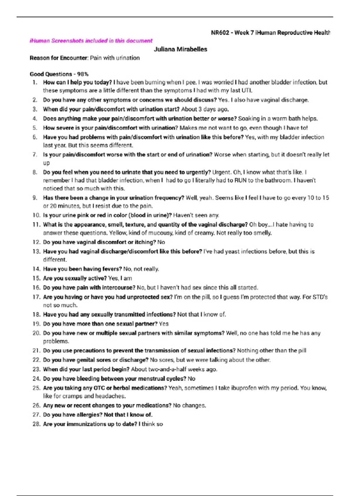 I HUMANCASE STUNDAY JULIANA MIRABELLA PAINFUL URINATION CERVICITIS LATEST 2024