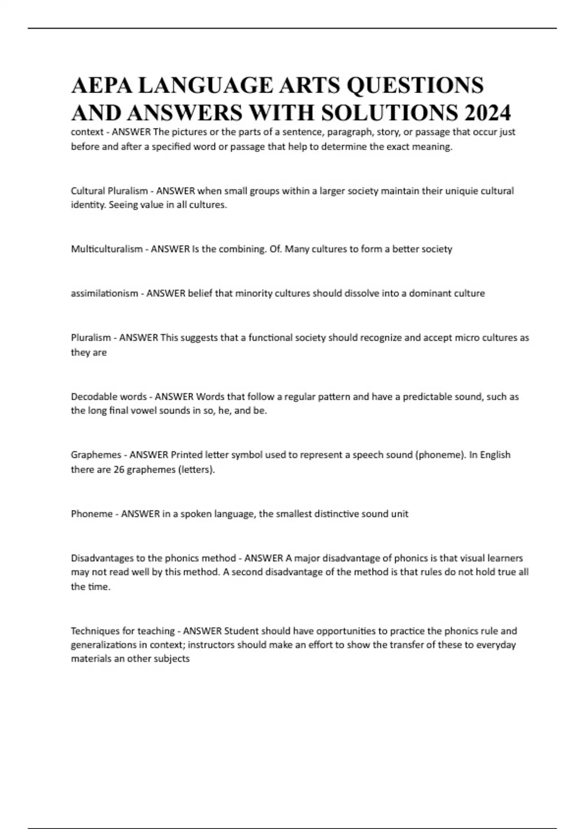 AEPA LANGUAGE ARTS QUESTIONS AND ANSWERS WITH SOLUTIONS 2024
