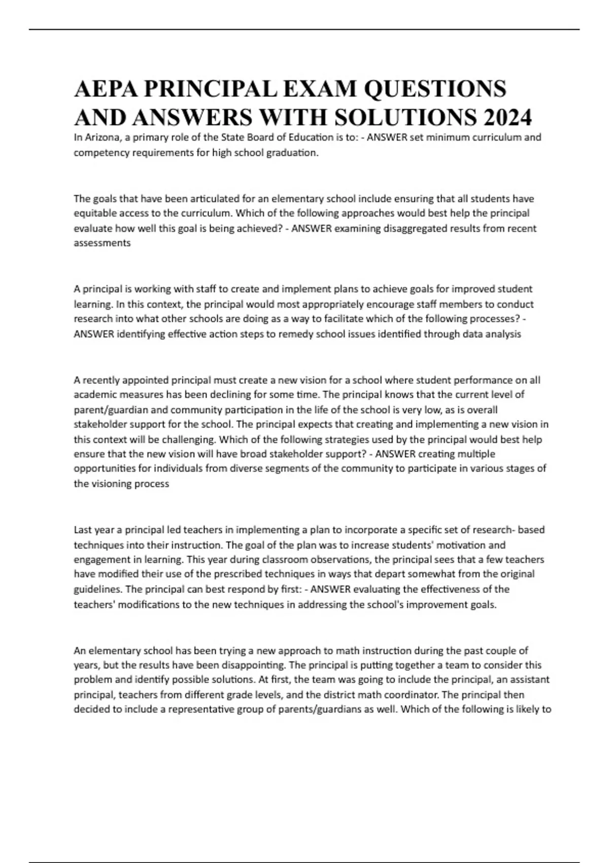AEPA PRINCIPAL EXAM QUESTIONS AND ANSWERS WITH SOLUTIONS 2024