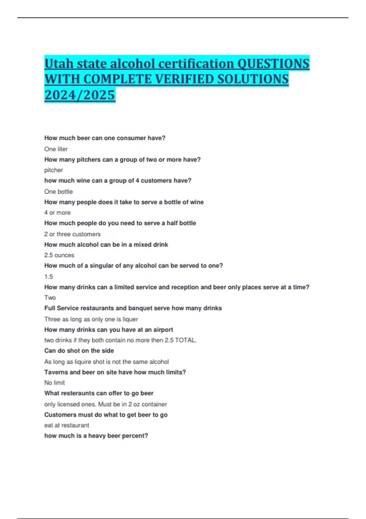 Utah state alcohol certification QUESTIONS WITH COMPLETE VERIFIED SOLUTIONS 2024/2025